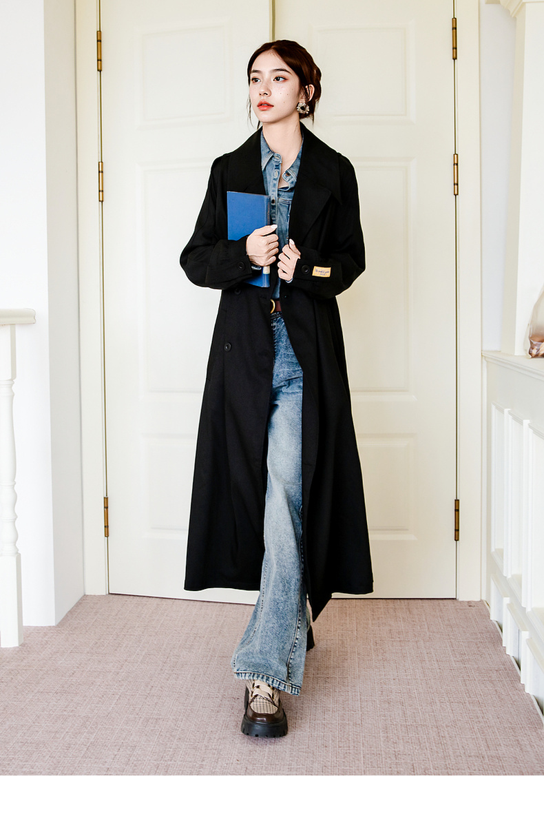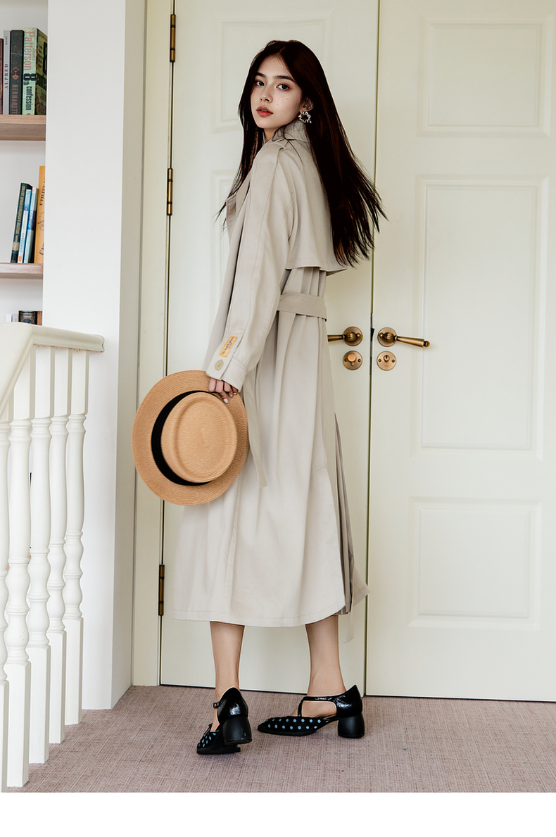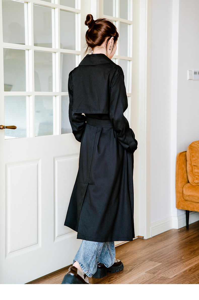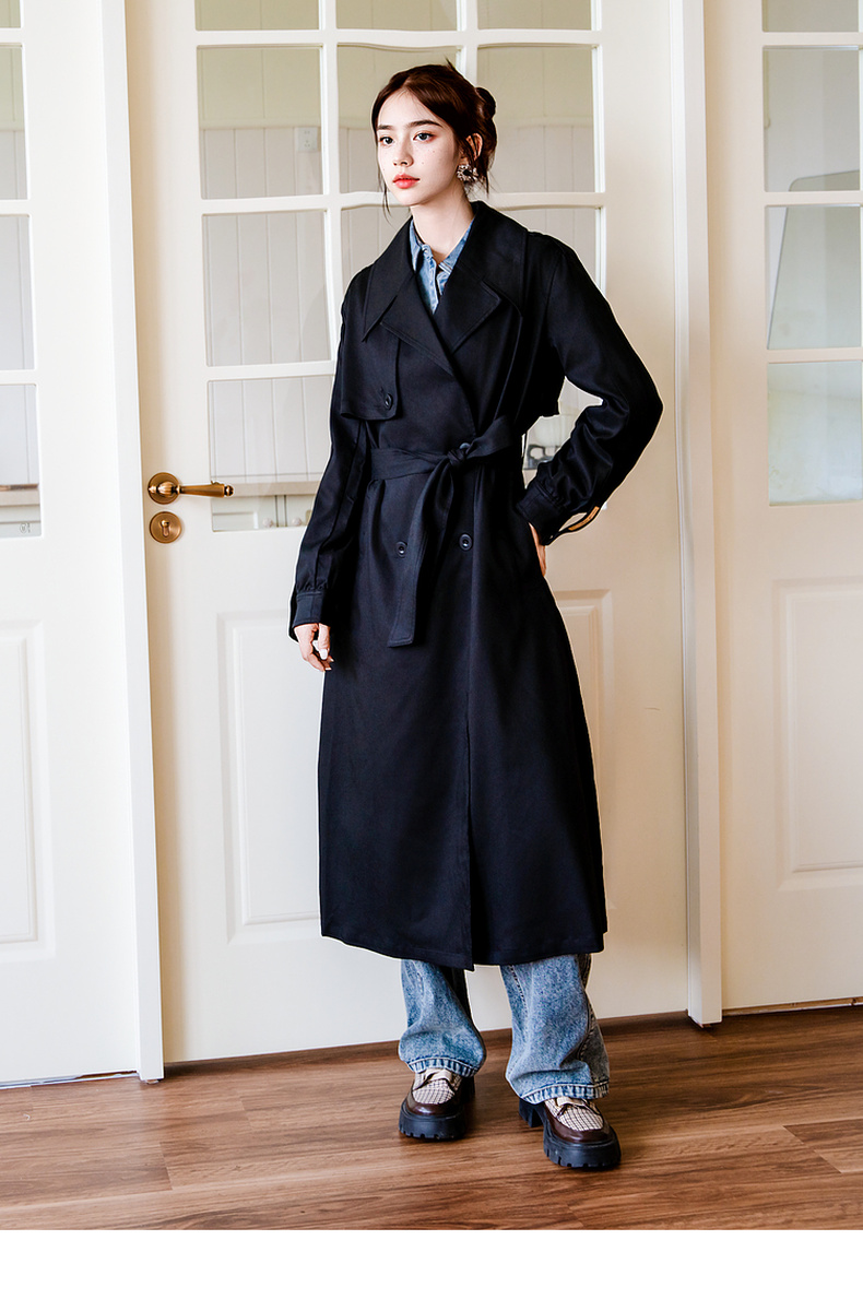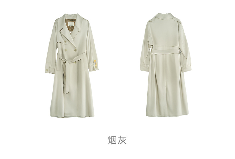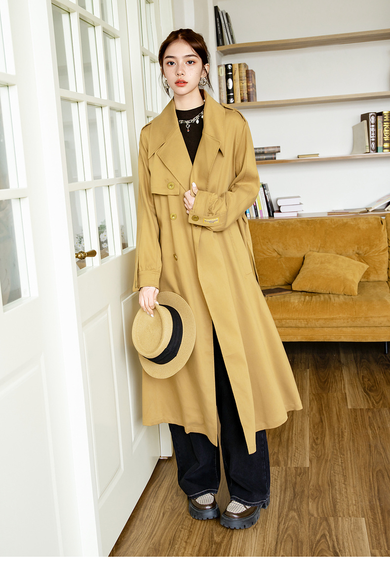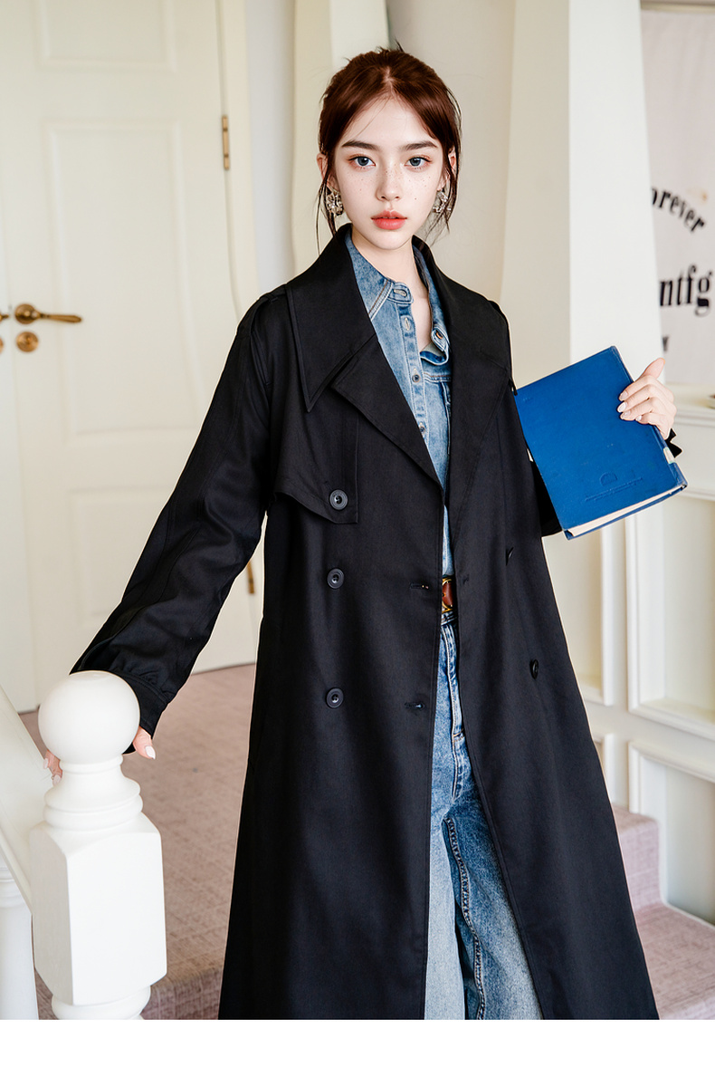 谜底通勤风衣女2025秋季新款简约气质纯色双排扣长外套257ME7725