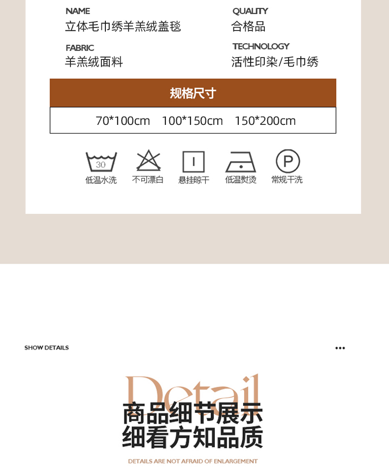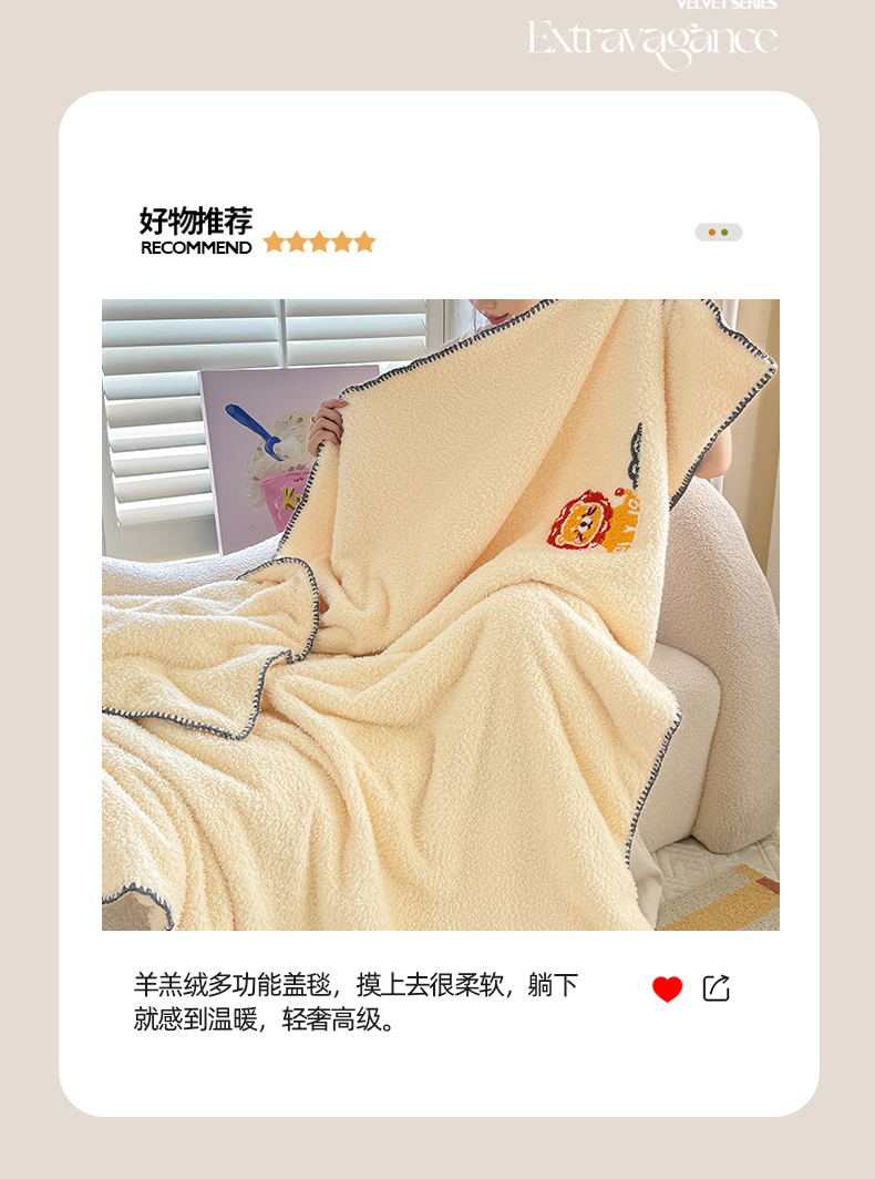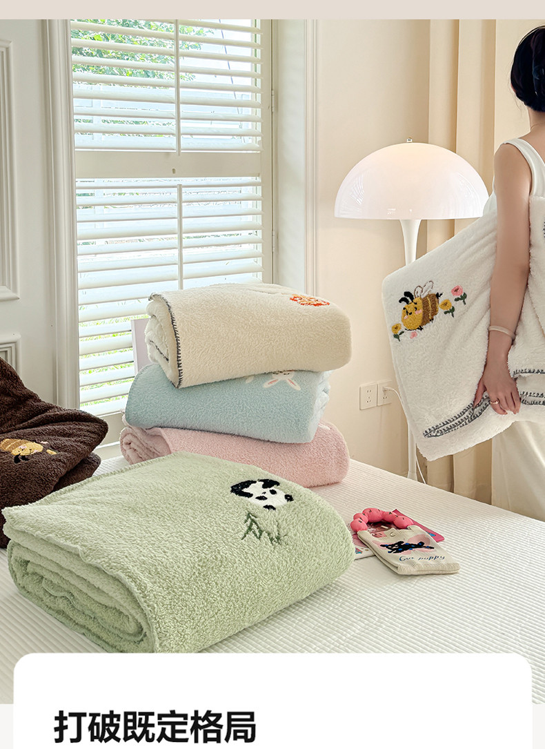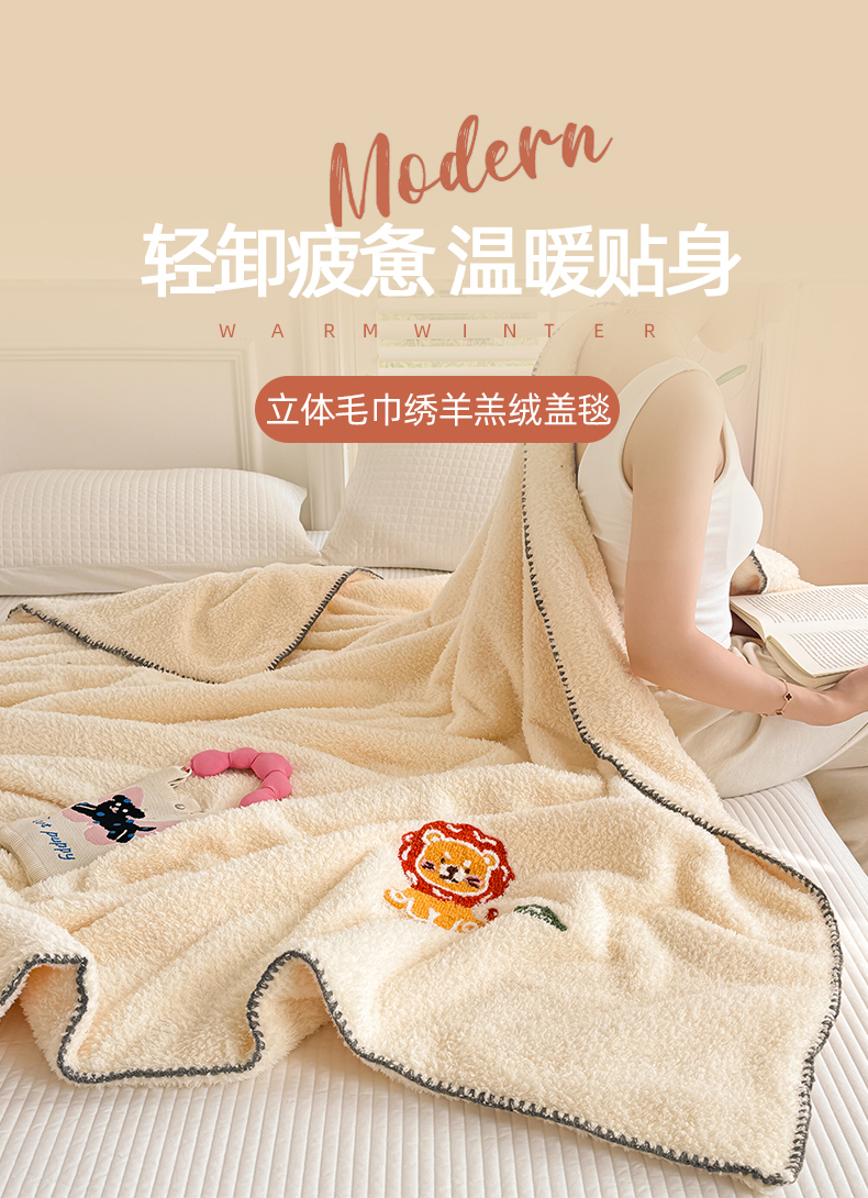 【换季出清】自然醒立体毛巾绣羊羔绒三角针毛毯加厚秋冬办公室午睡披肩毯沙发用盖毯牛奶珊瑚绒小毯子JY