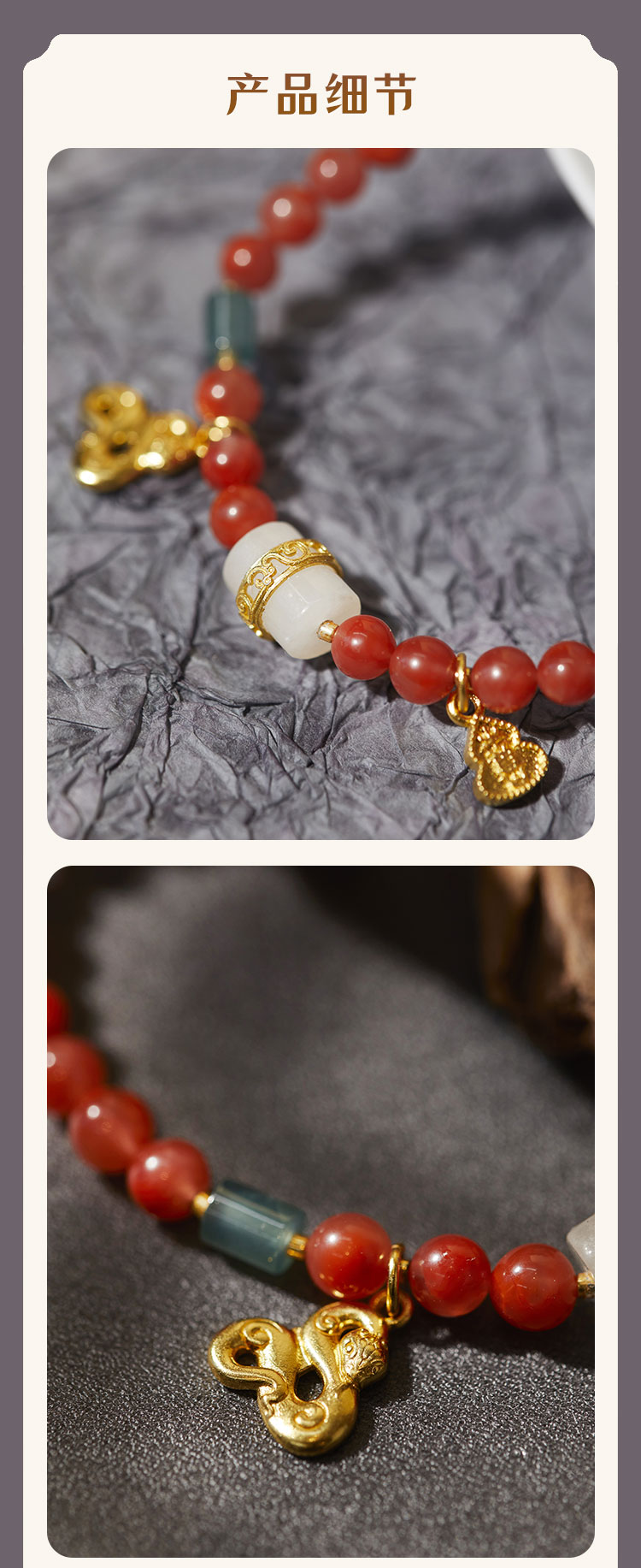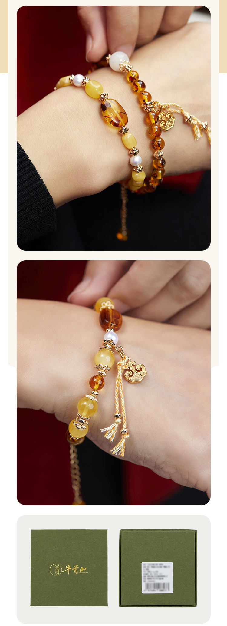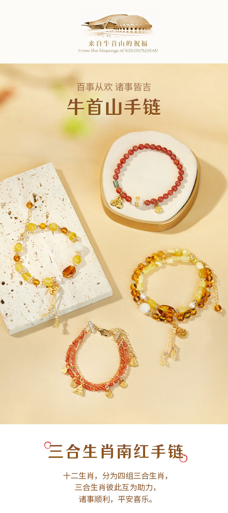 牛首山南红蜜蜡手链珠落玉盘新中式珠宝琥珀手链本命年新年礼物