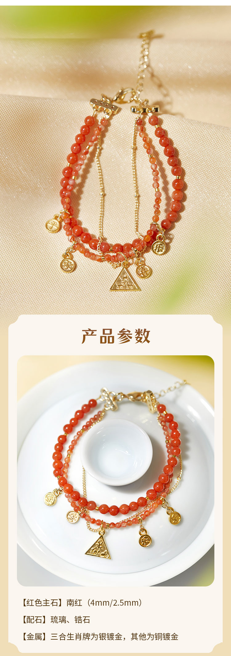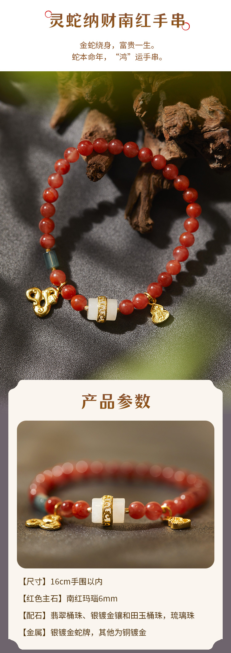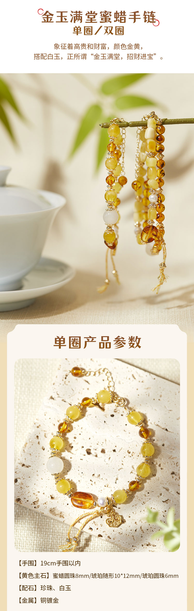 牛首山南红蜜蜡手链珠落玉盘新中式珠宝琥珀手链本命年新年礼物