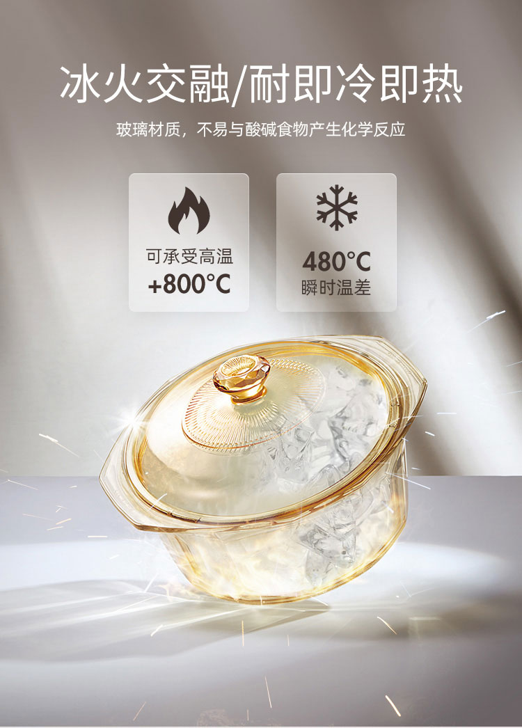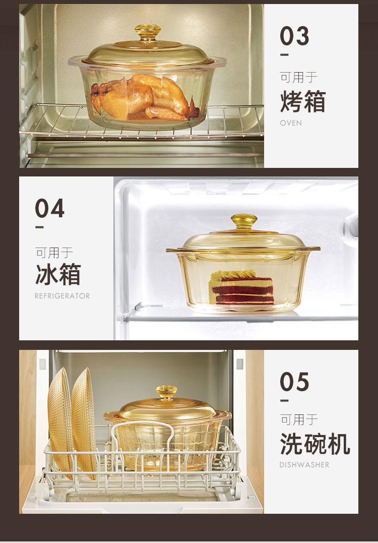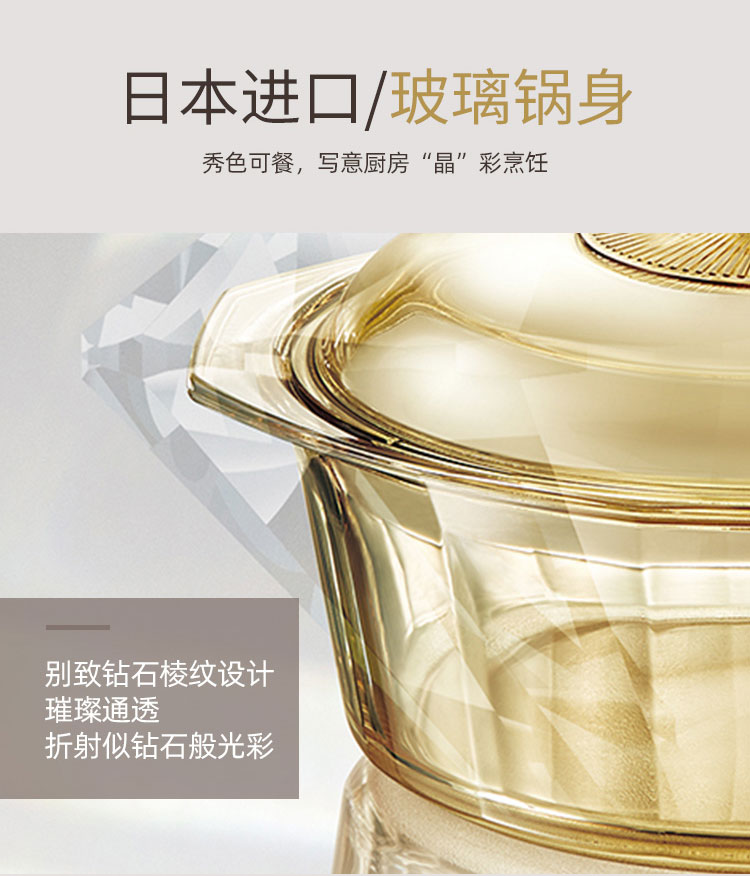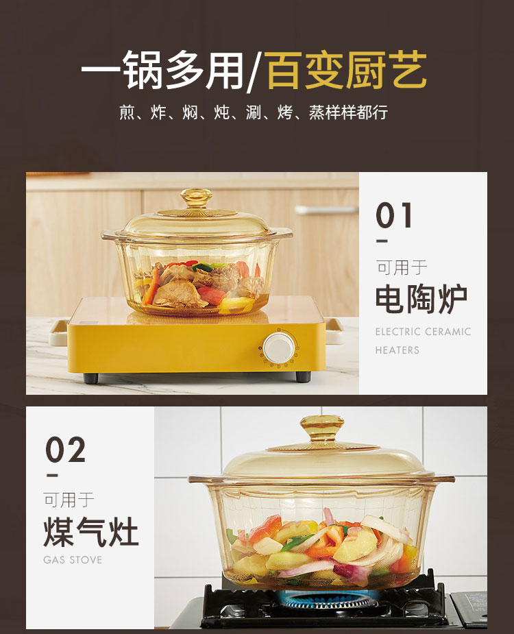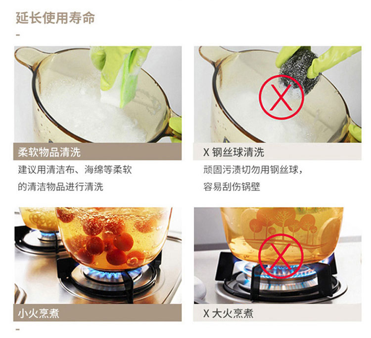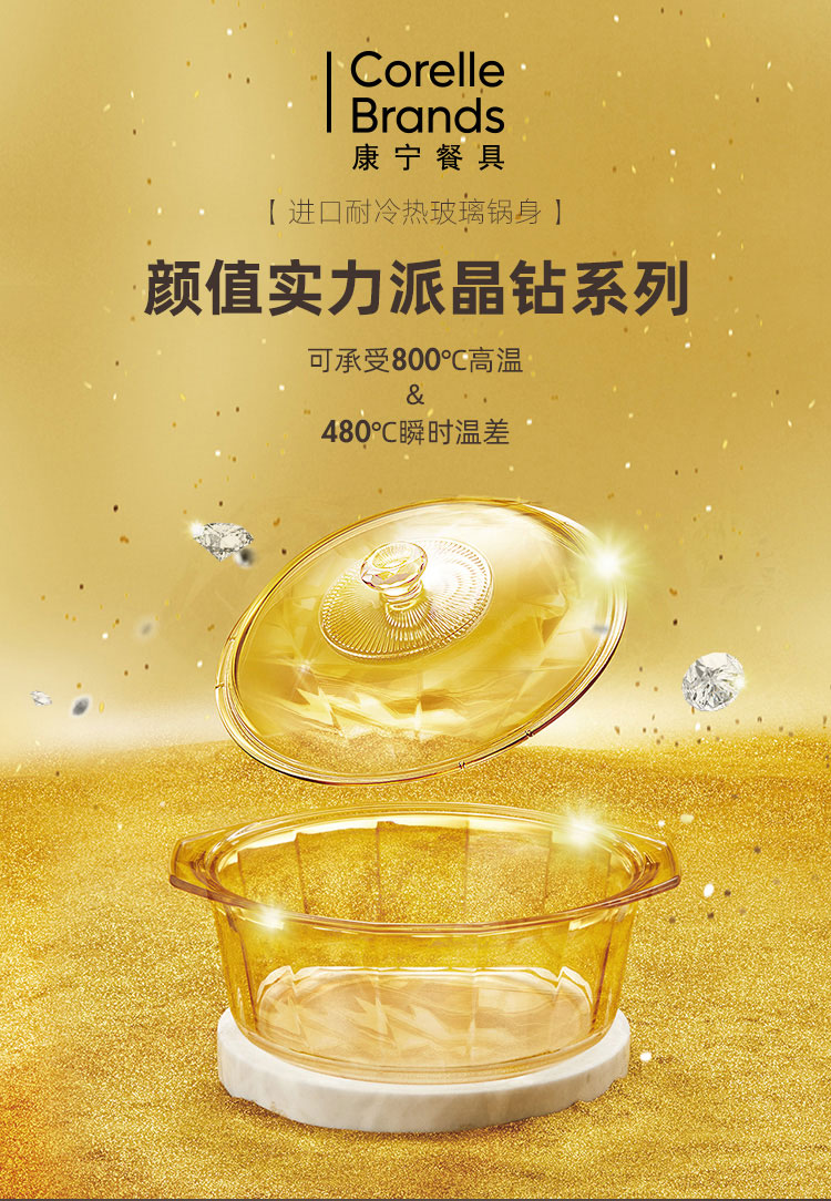 康宁餐具晶钻玻璃锅辅食锅炒锅汤锅泡面火锅煮锅家用4.1L晶钻单锅