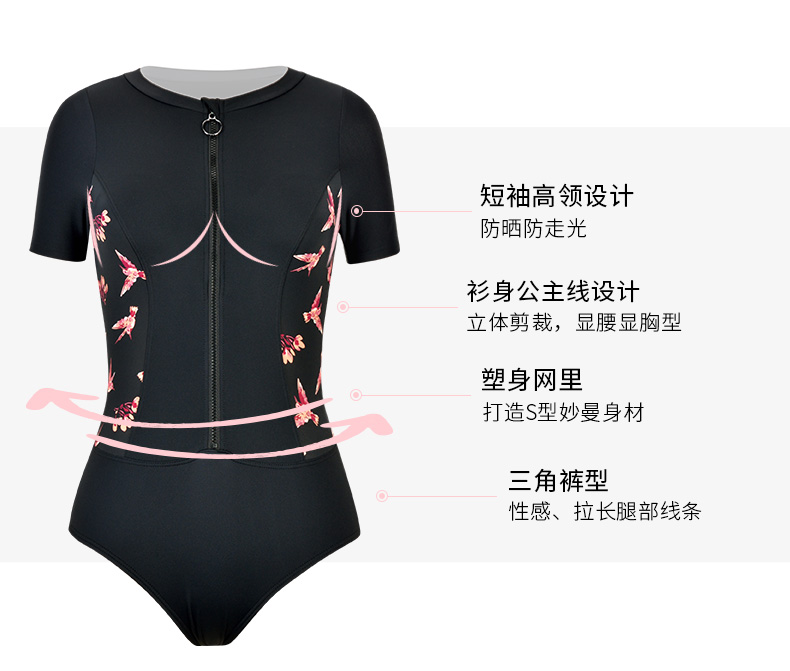 | 袖长: 短袖 | 款式: 三角连体泳衣 |