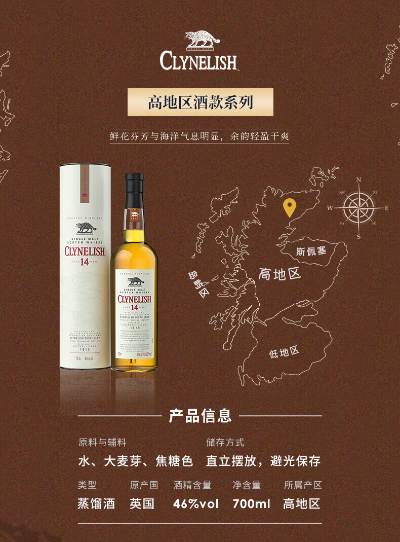 克里尼利基14年 沿海高地 小猫 苏格兰单一麦芽威士忌700ml