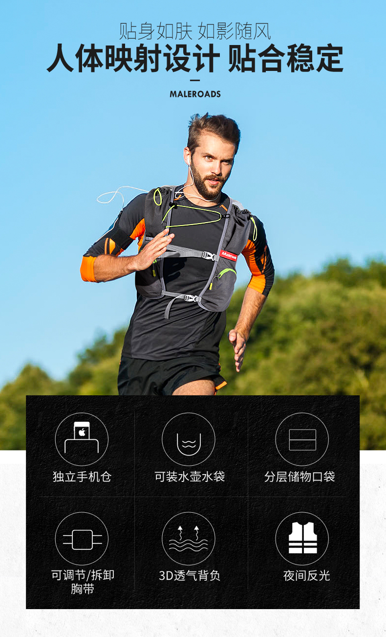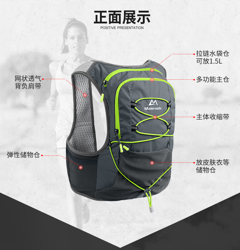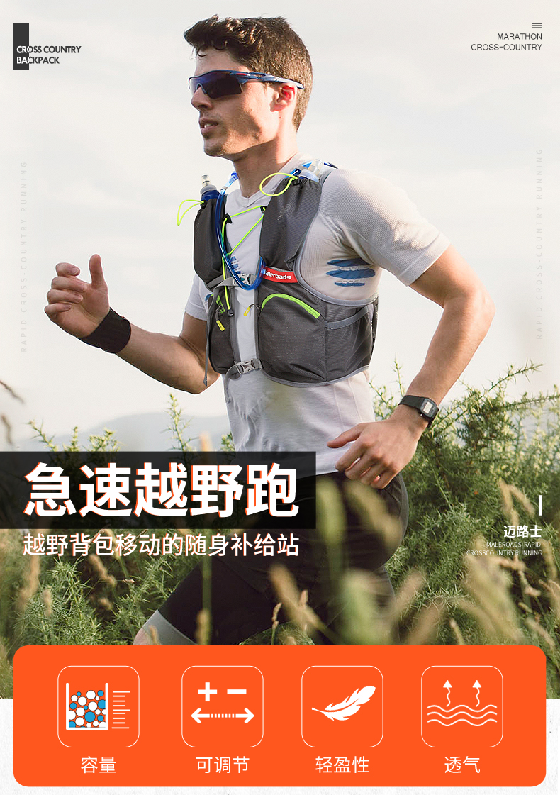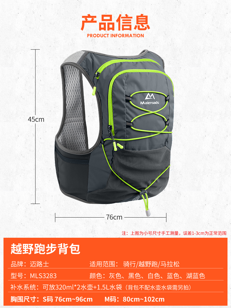【清仓半价】迈路士越野跑步双肩背包男透气户外徒步运动水袋包女防水骑行包8L