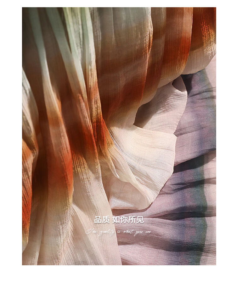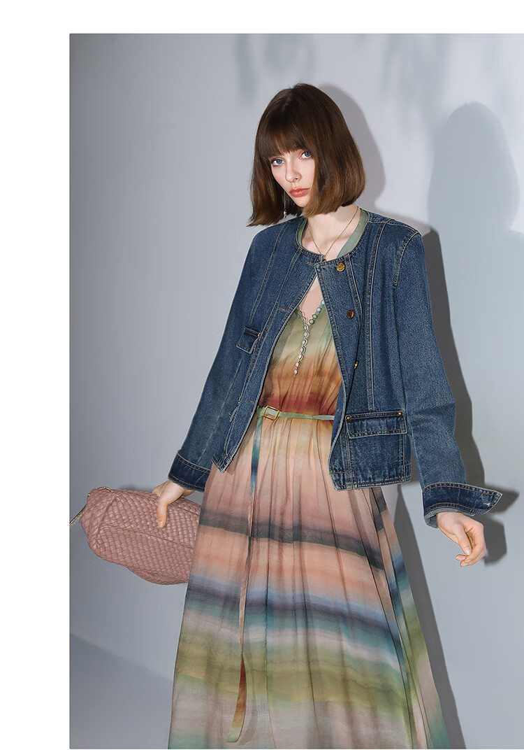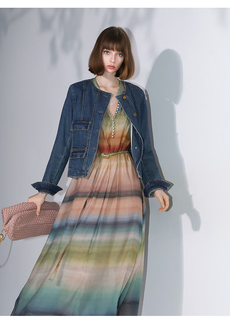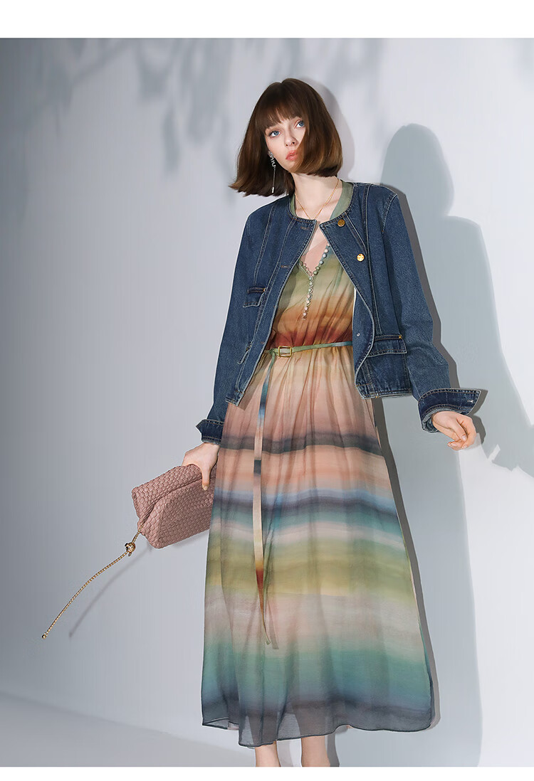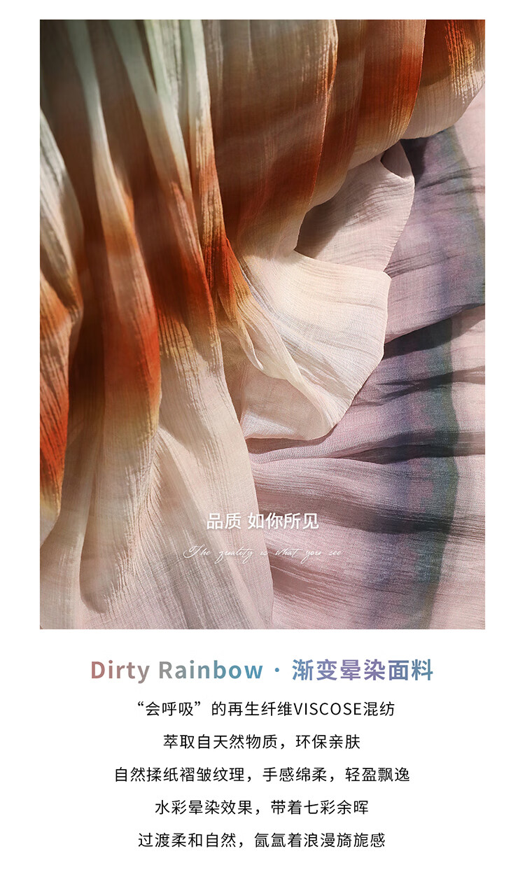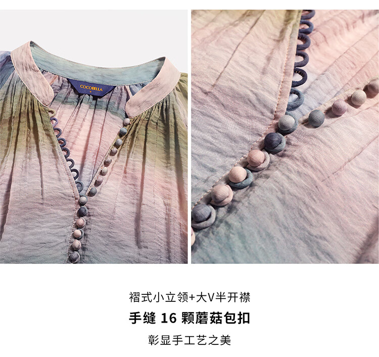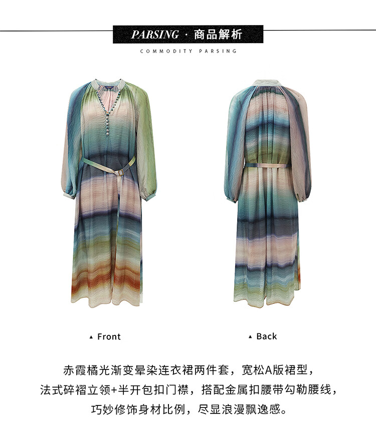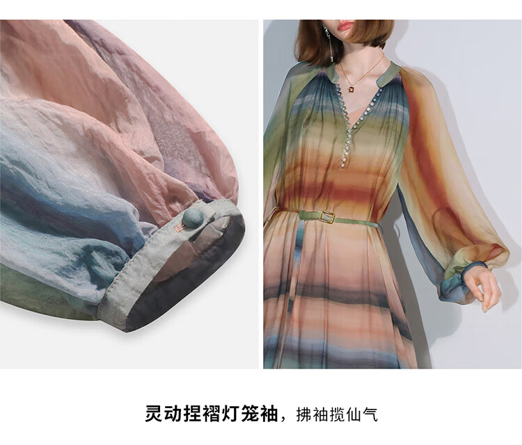 【限时秒杀】COCOBELLA[赤霞橘光]手绘彩虹条纹飘逸长袖连衣裙套装FR7045
