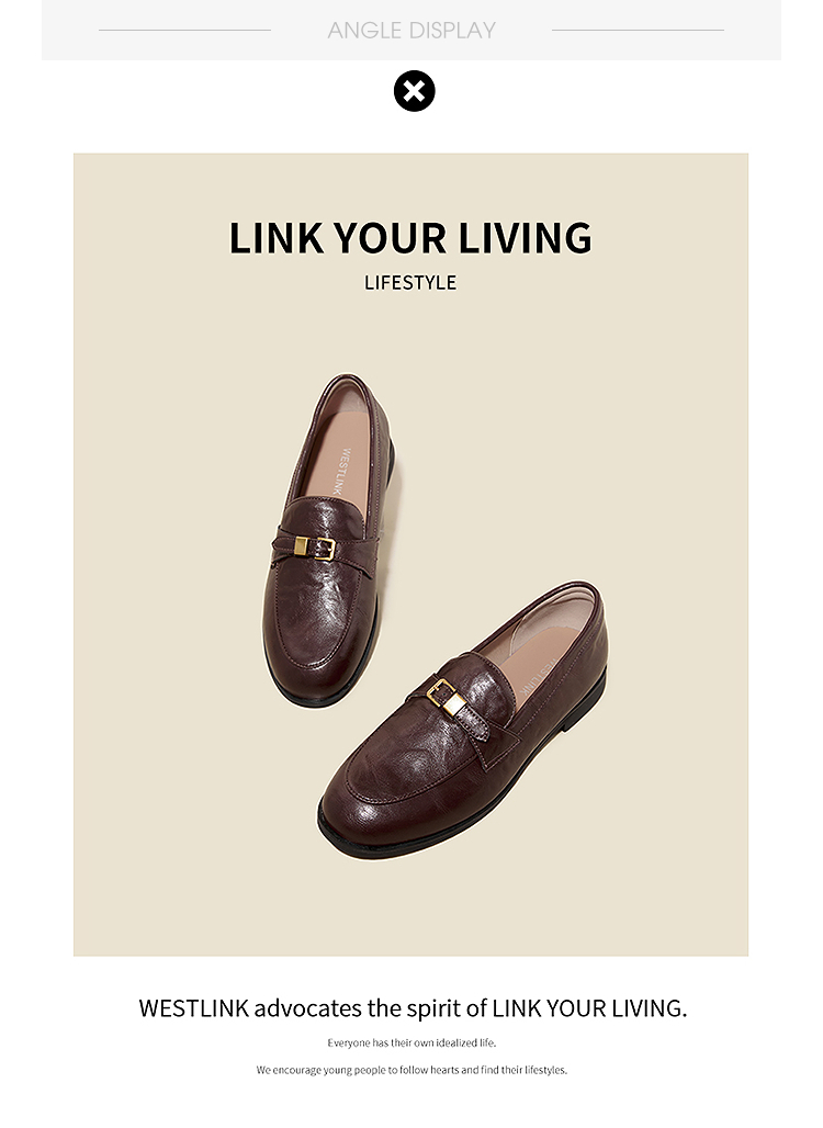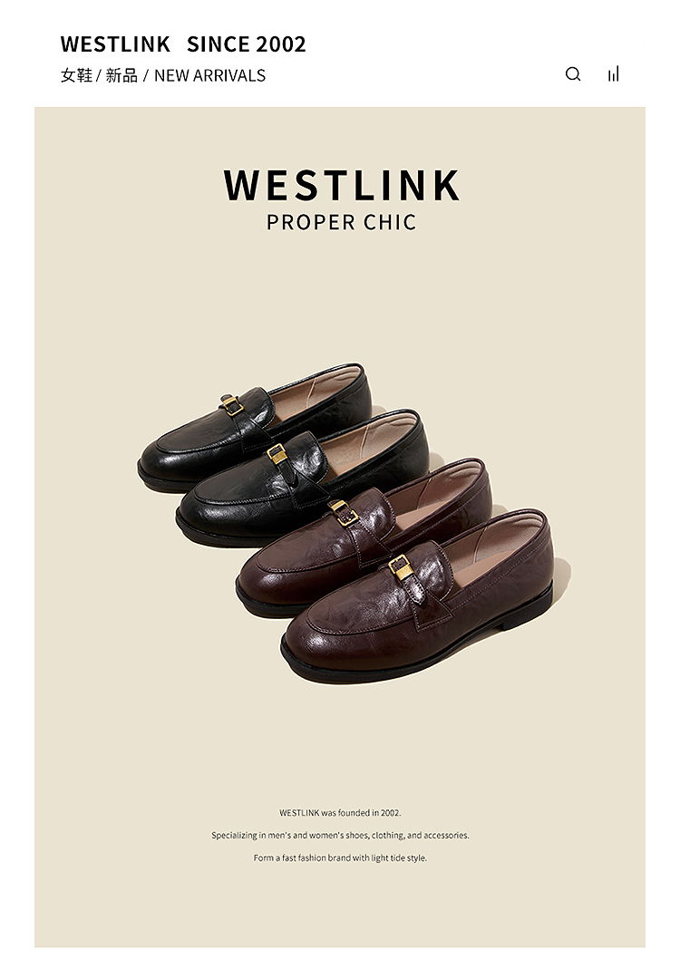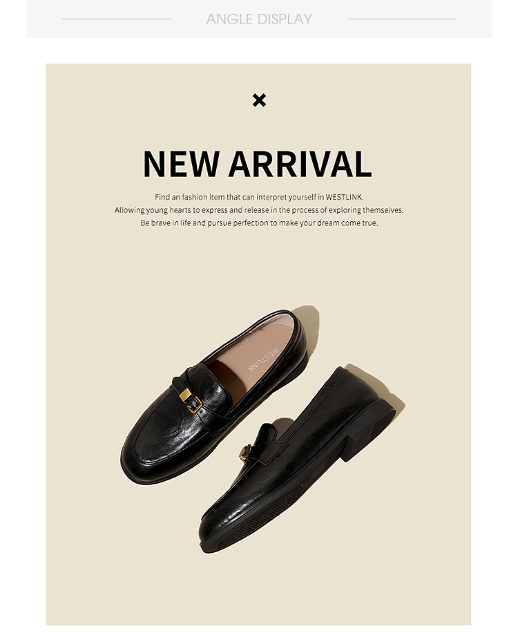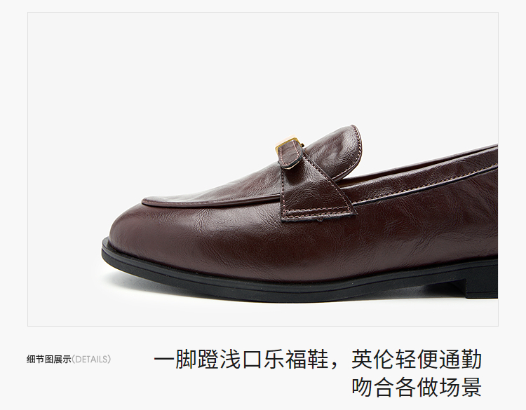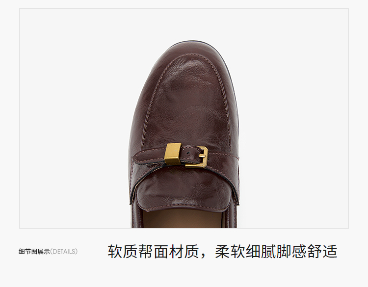 西遇软面乐福鞋女2026春季新款英伦风金属饰扣通勤复古厚底单鞋V0166242