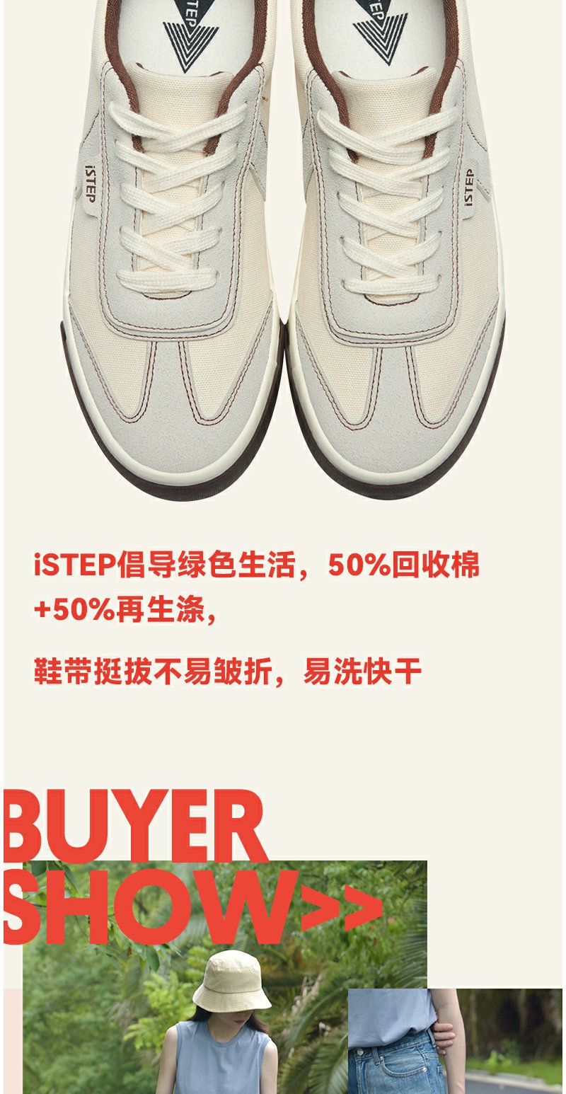 istep夏季新款拼贴低帮系带德训鞋女款百搭休闲板鞋潮流