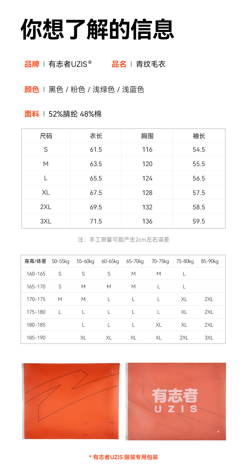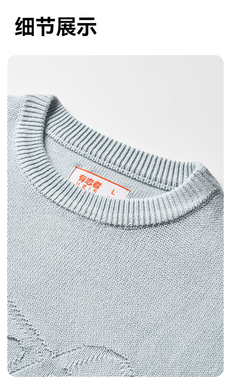 【积分兑换】有志者UZIS针织毛衣男秋冬保暖新款纯色篮球运动圆领毛线套衫青纹