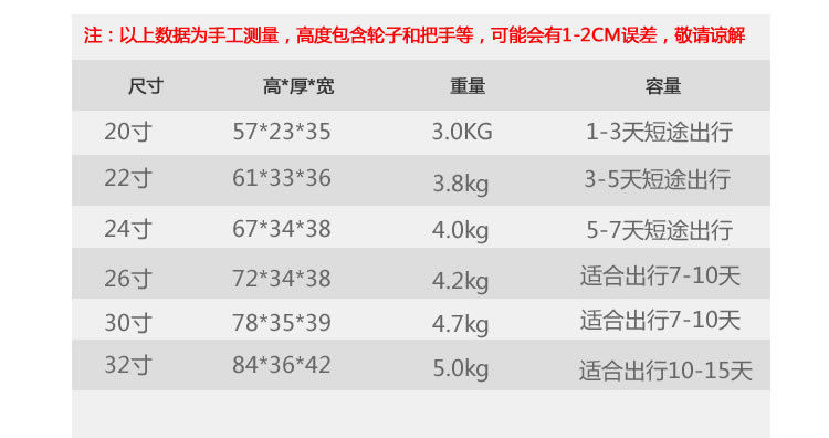 尺寸: 22寸,24寸,26寸,28寸,30寸