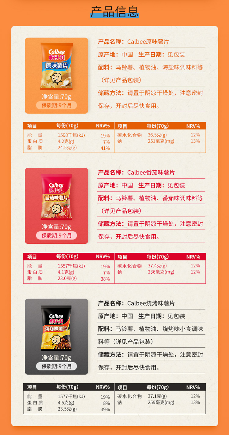 Calbee烧烤味薯片70g/包
