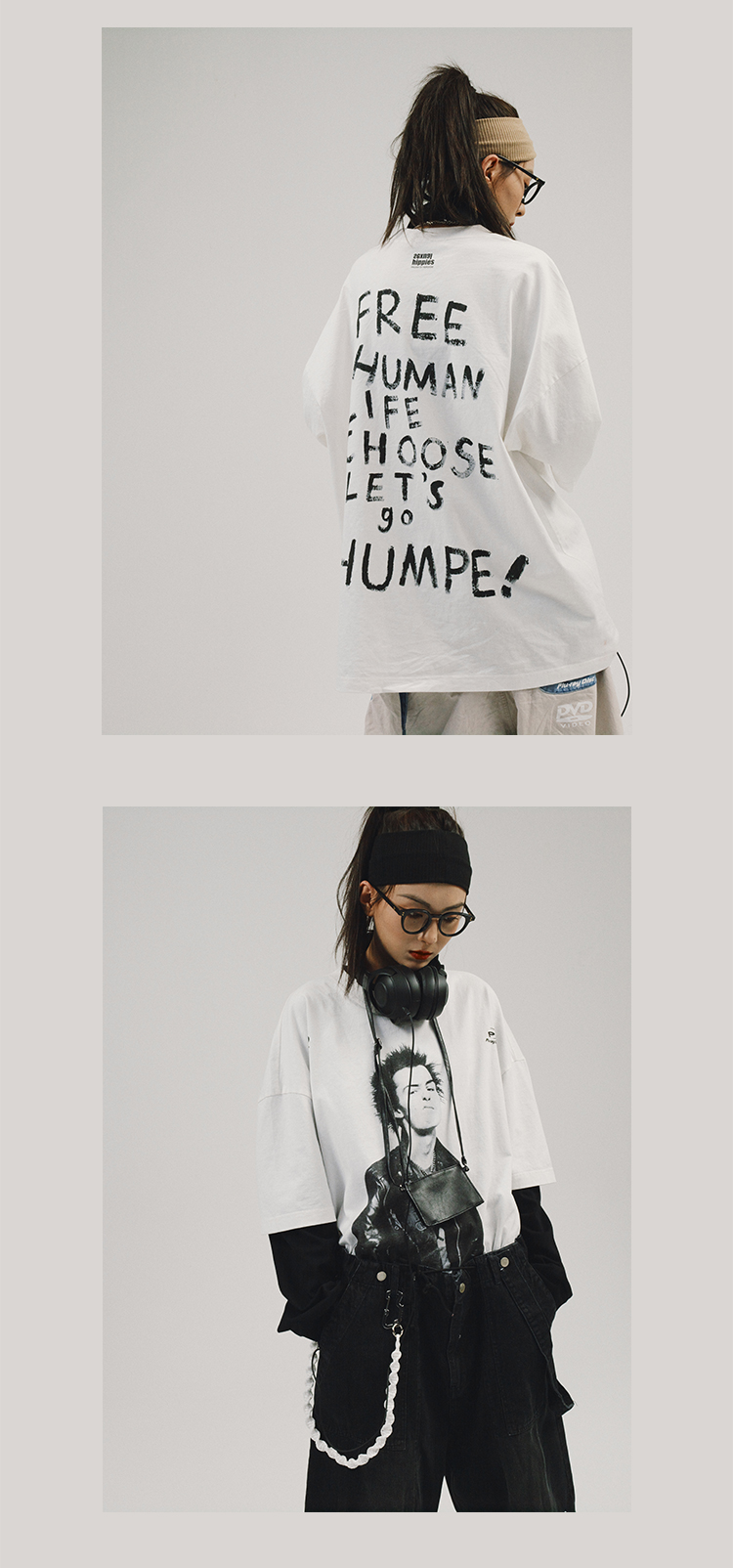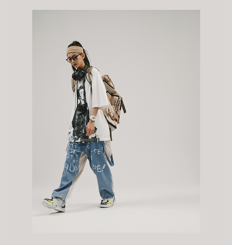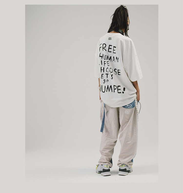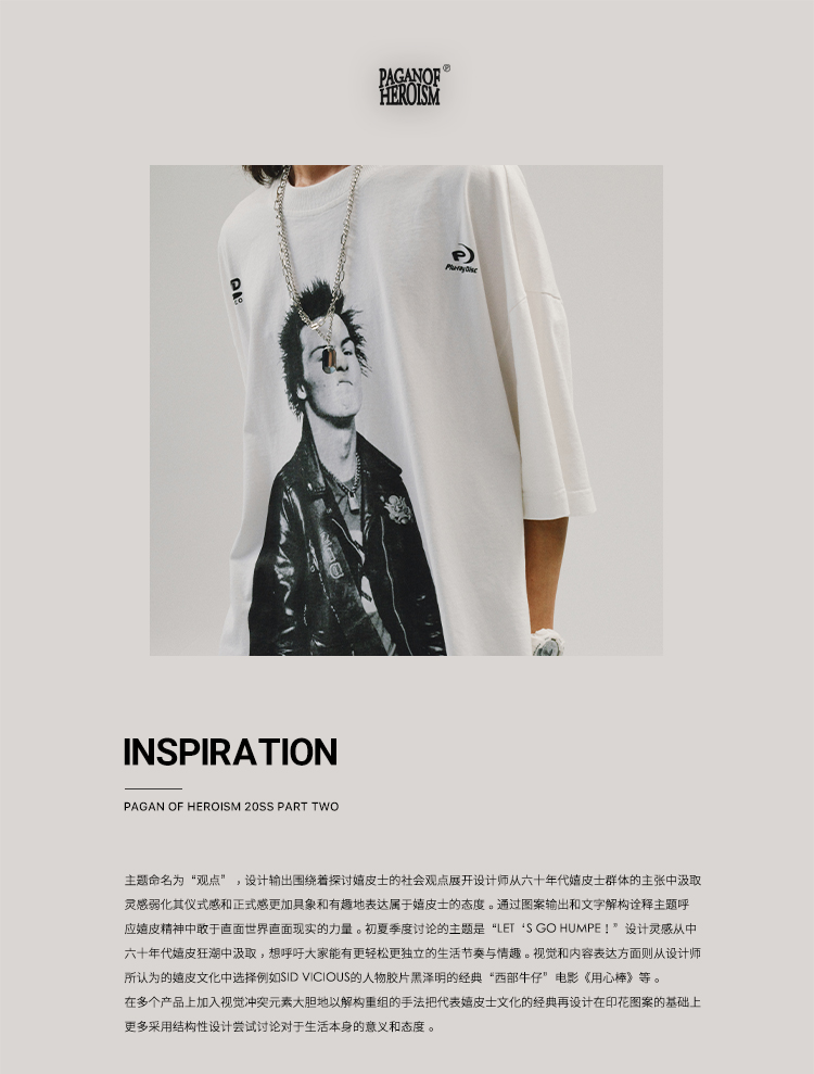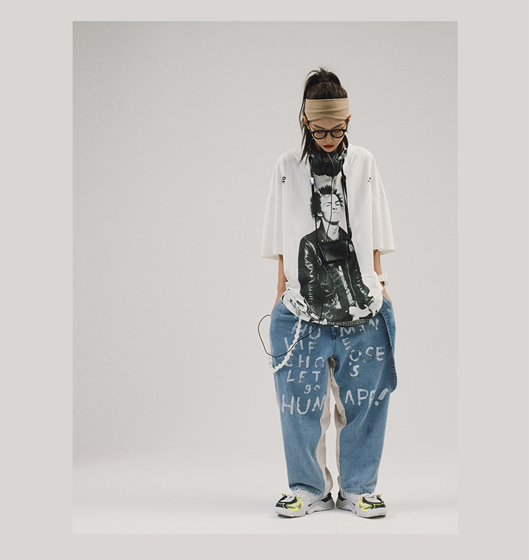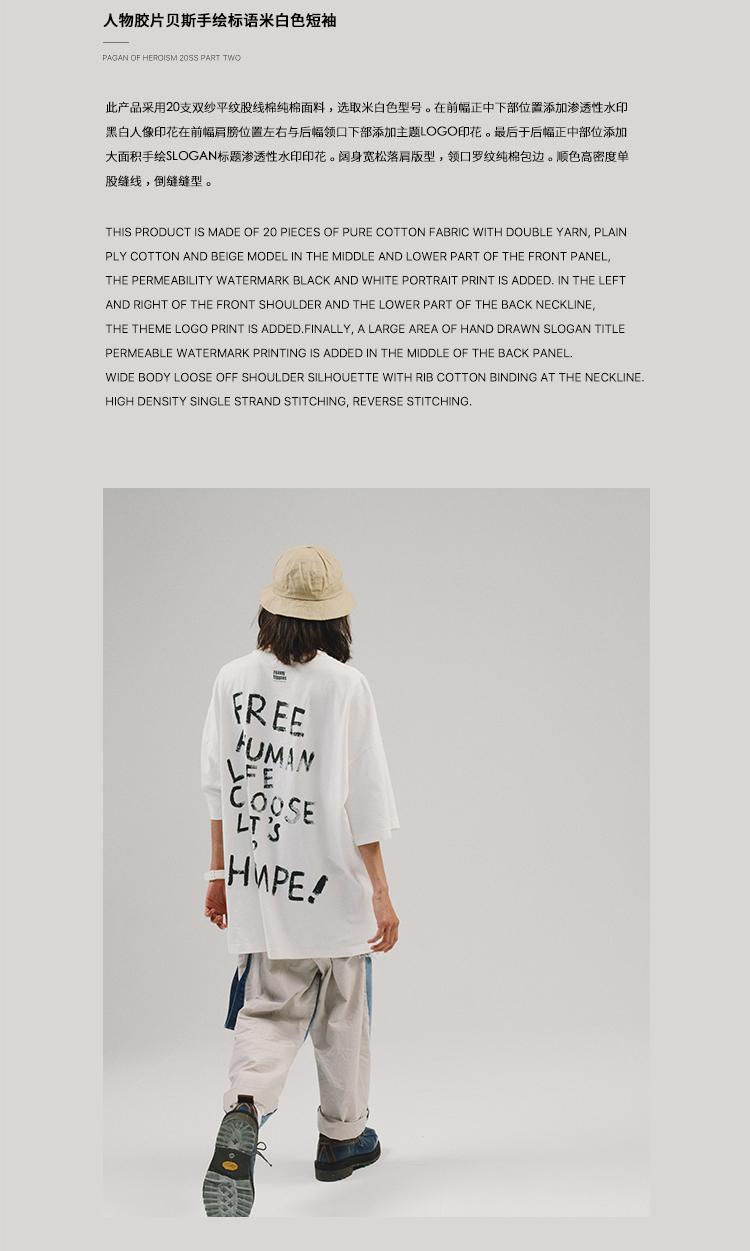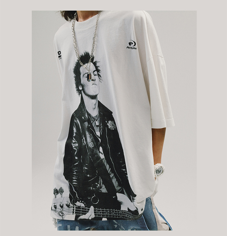 POH 人物胶片贝斯手印花国潮上衣服宽松落肩短袖T恤男女潮流潮牌