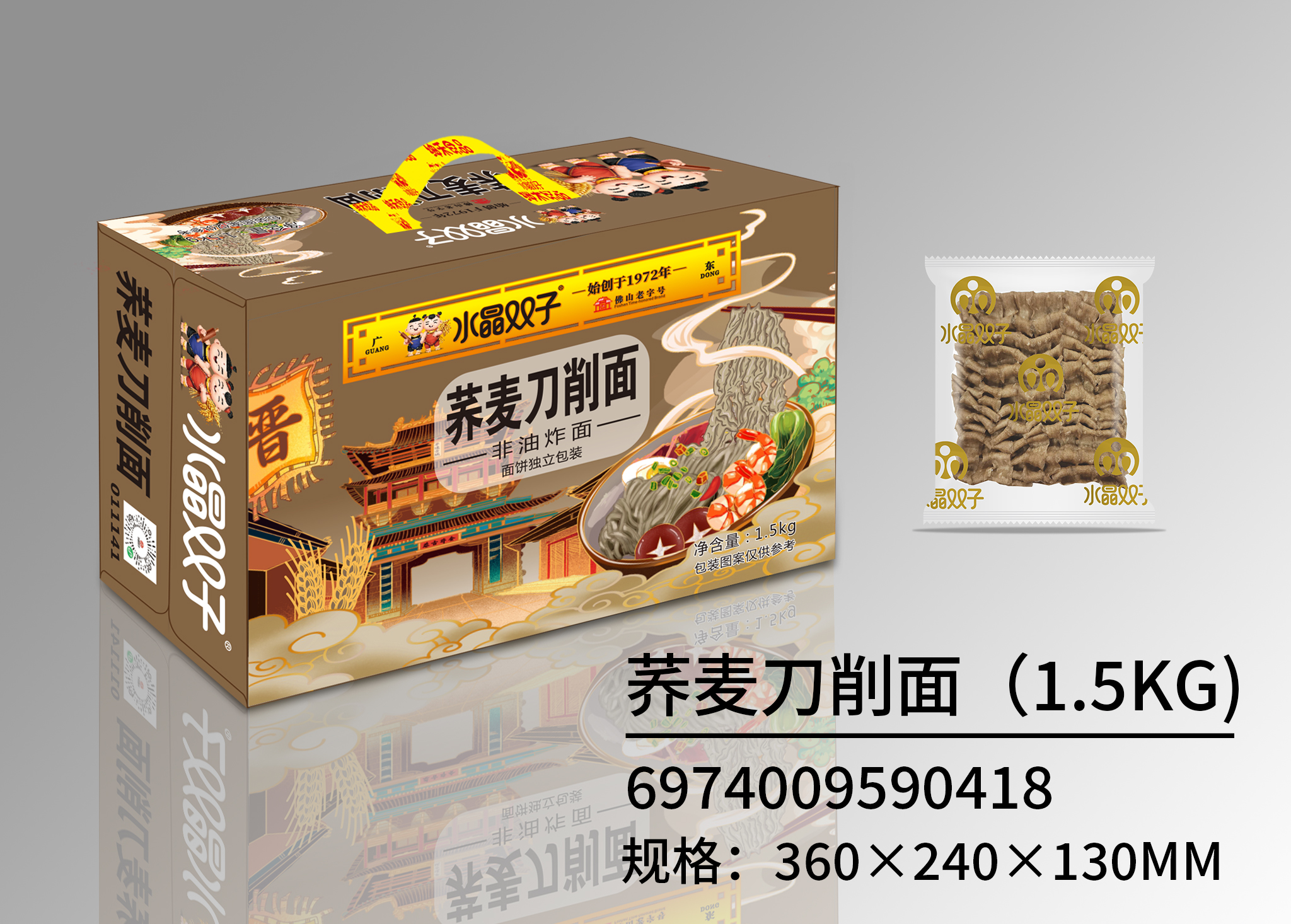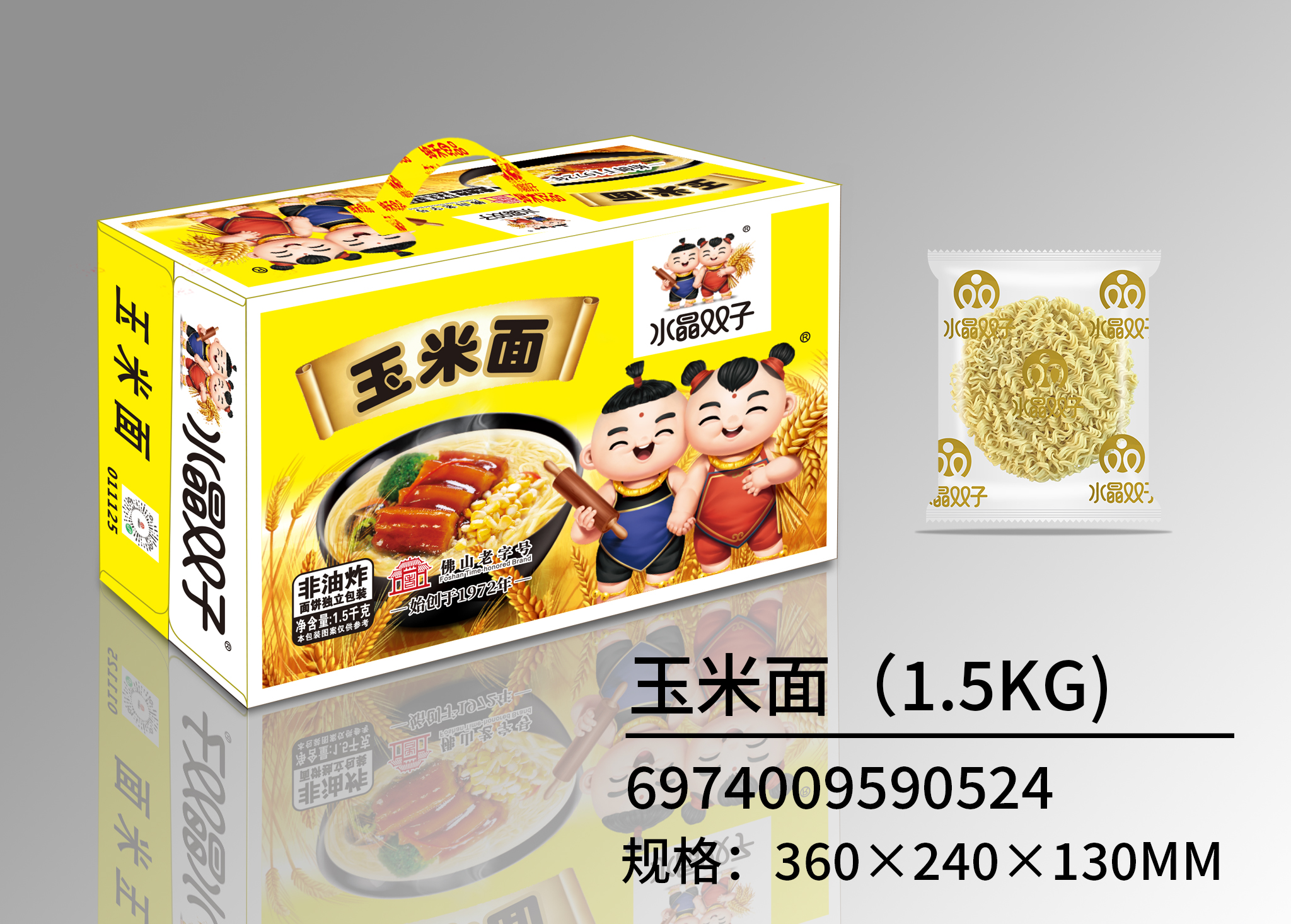 【佛山老字号】水晶双子非油炸面淮山刀削面/玉米面/长寿面/荞麦面 1.5KG箱装【够意思】