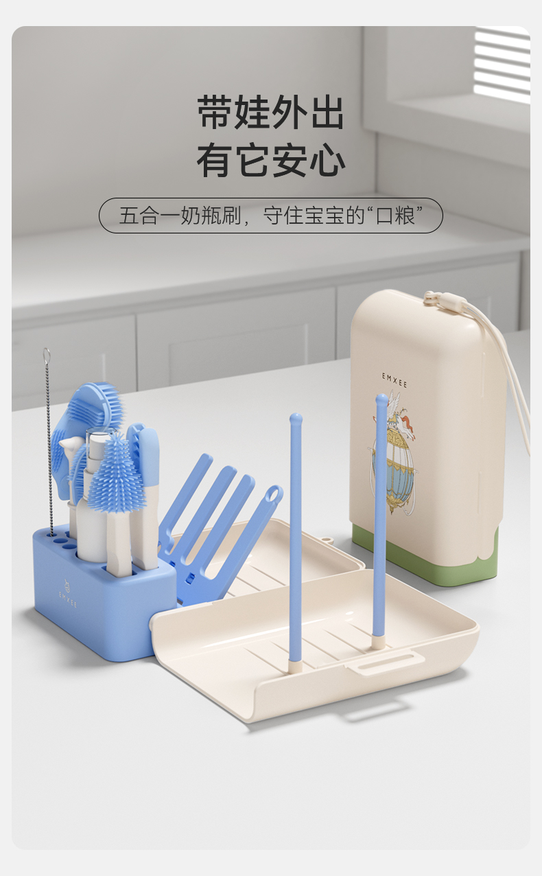 【洗浴用品】EMXEE嫚熙五合一便携式奶瓶刷