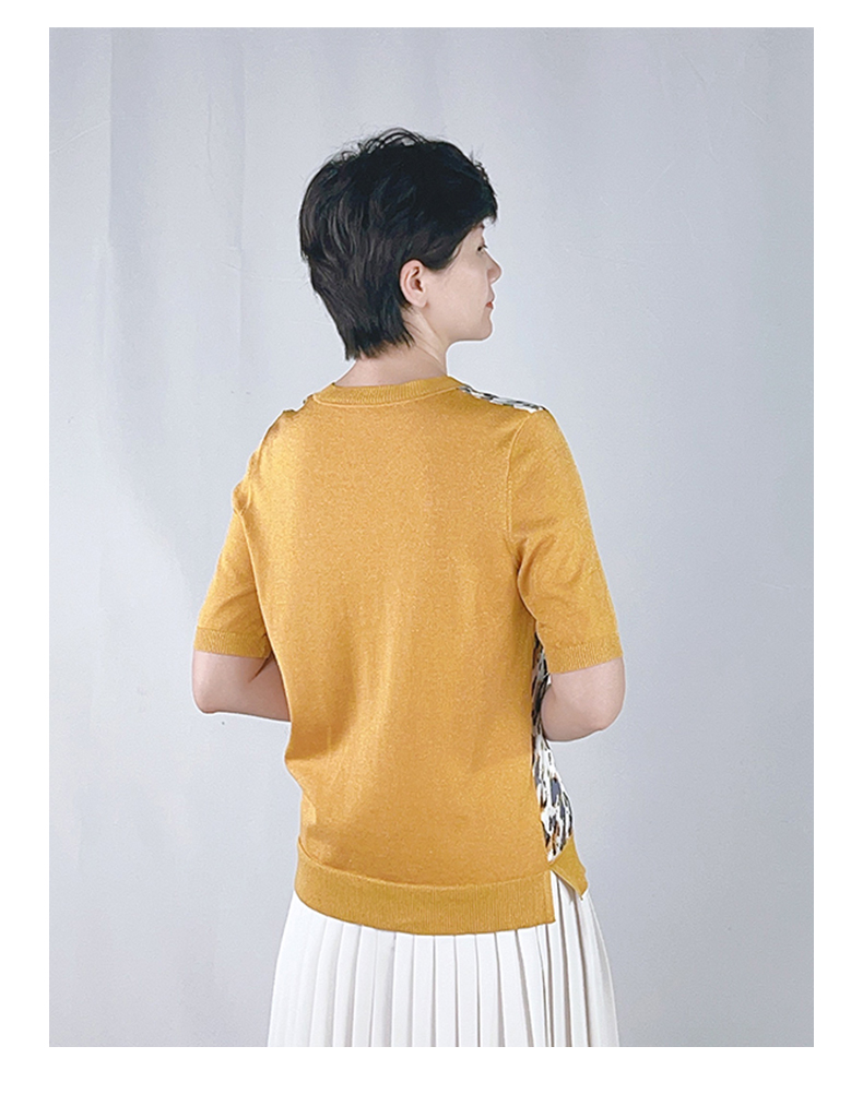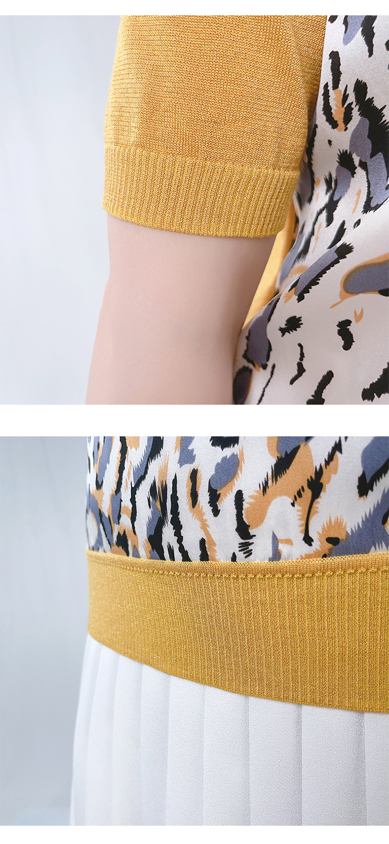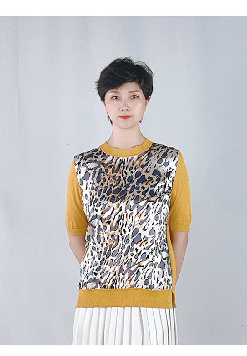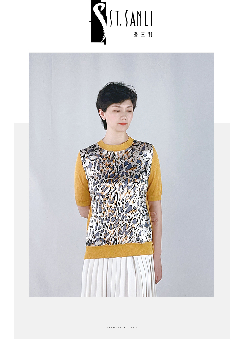 圣三利女装新春季拼接款豹纹针织衫SL121M09