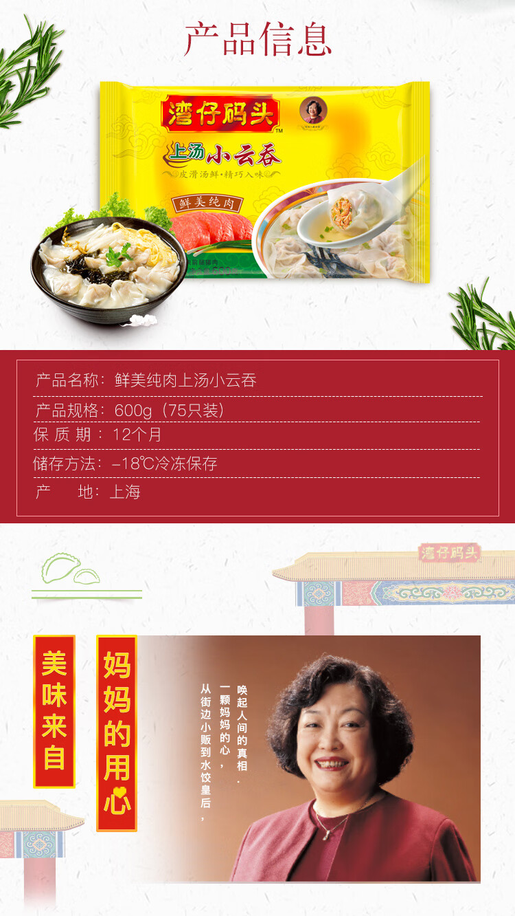 湾仔码头 鲜美猪肉上汤小云吞 600g(75只)/袋