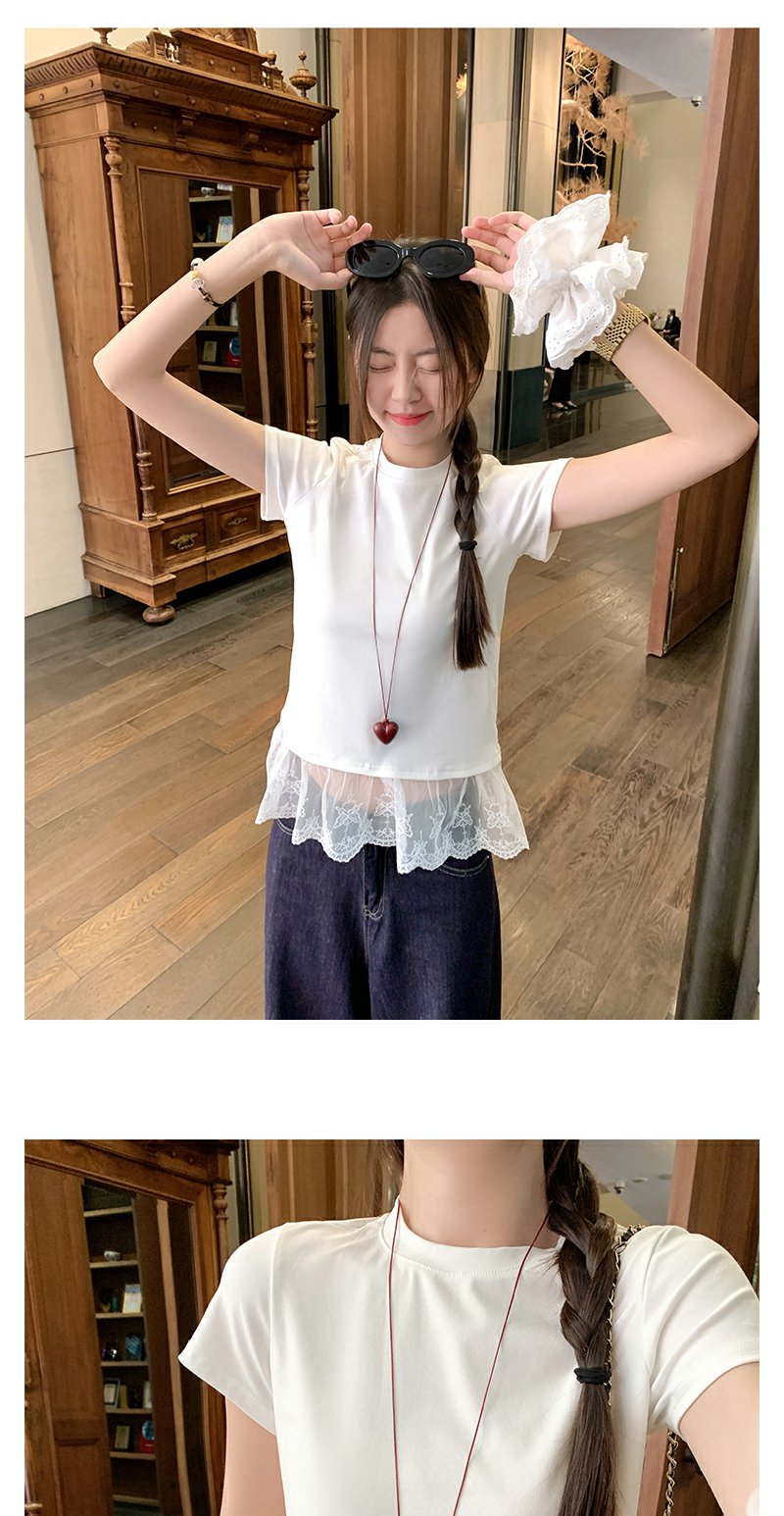 <曾小咸推荐>3.28现货秒杀 !微信超特价!蕾丝拼接假两件短袖T恤 日常109.99 立减60 秒杀49.99!!