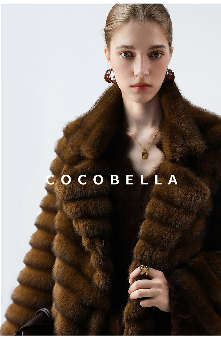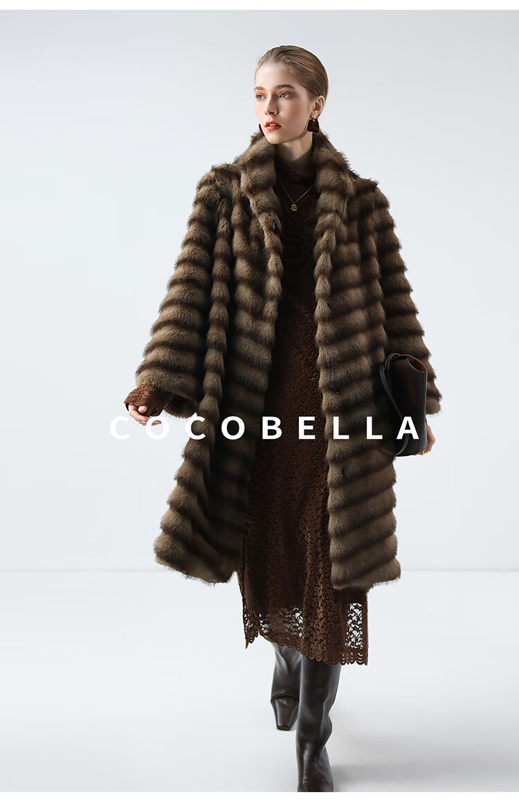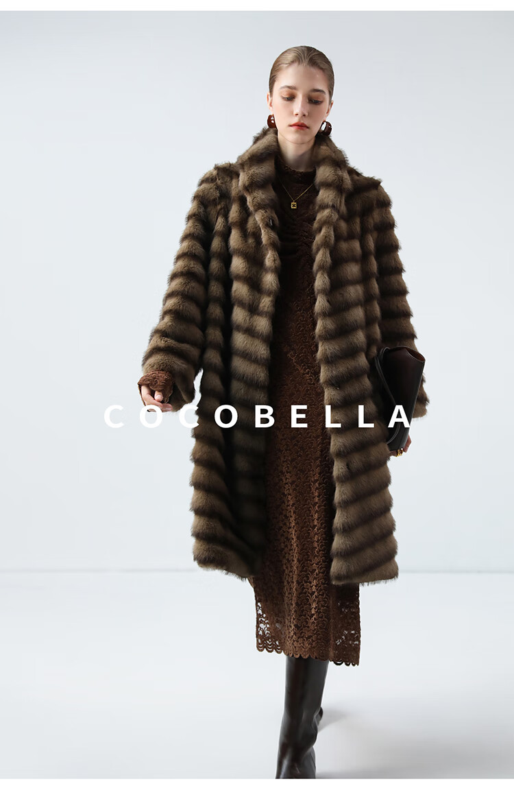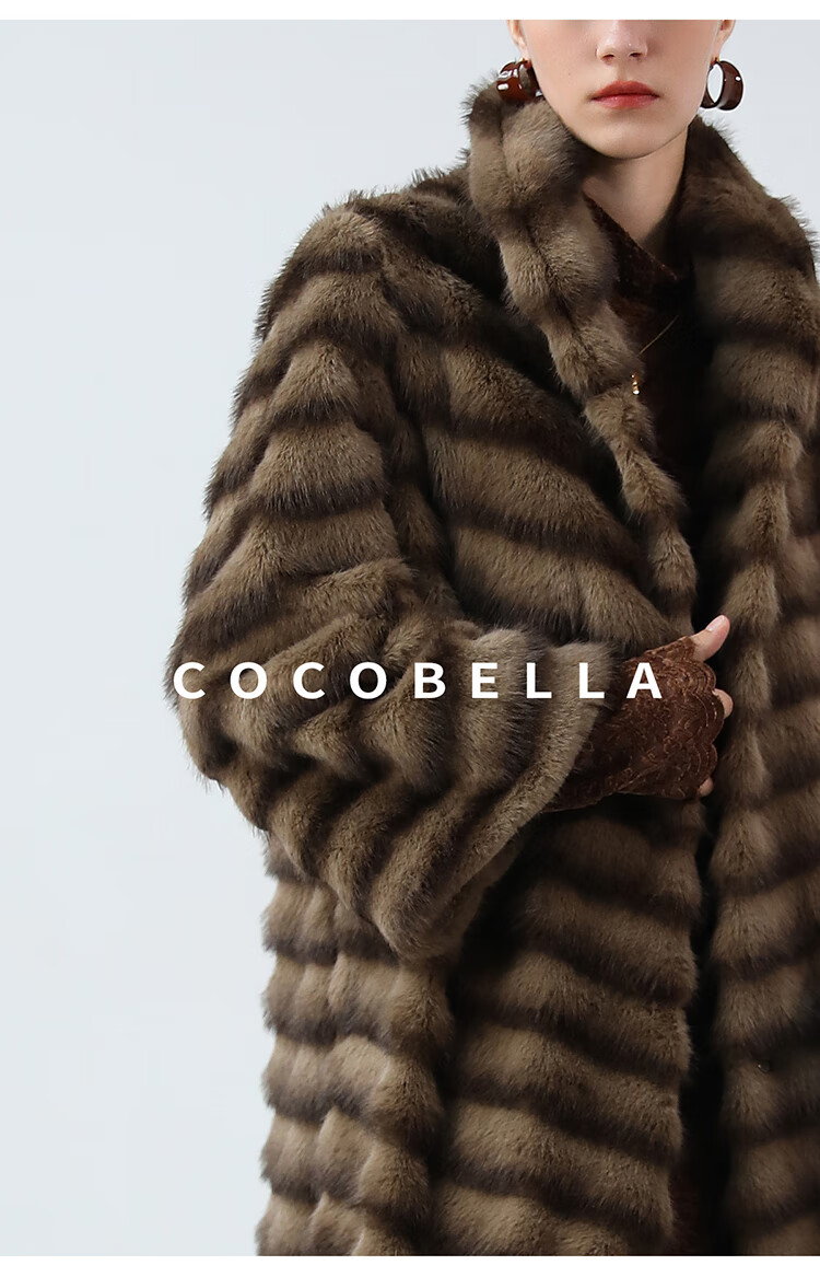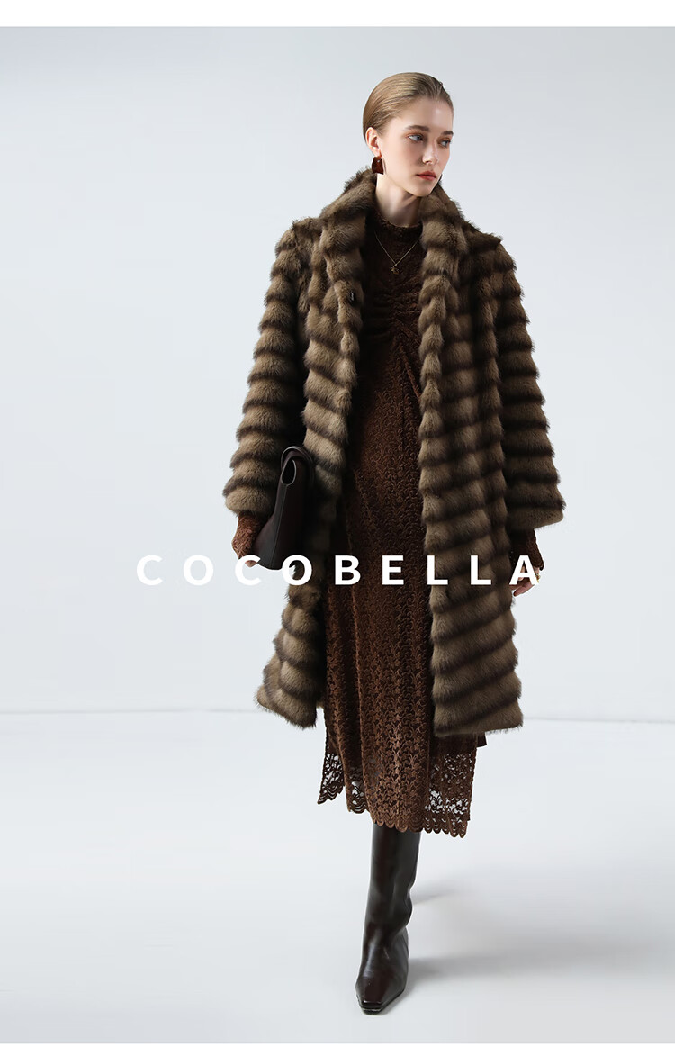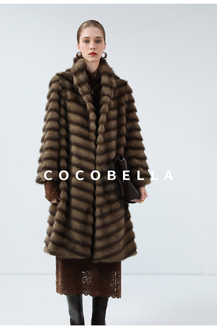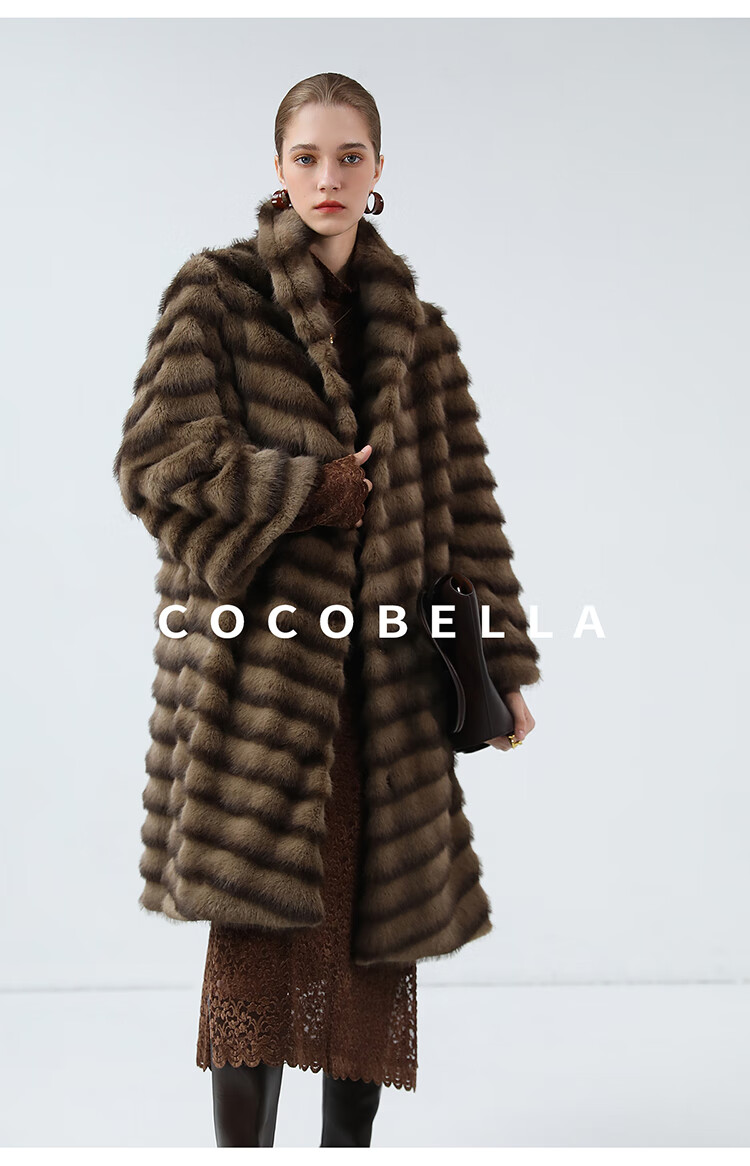 COCOBELLA仿水貂原色夹革环保皮草外套长款御寒大衣FU0007
