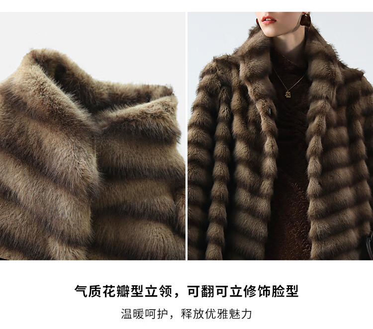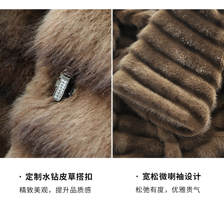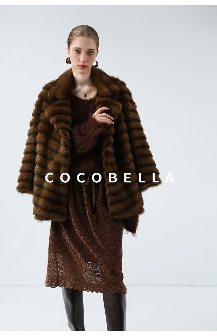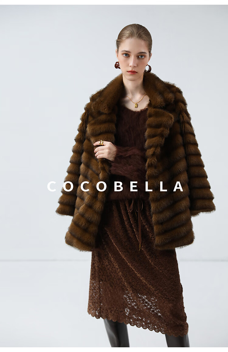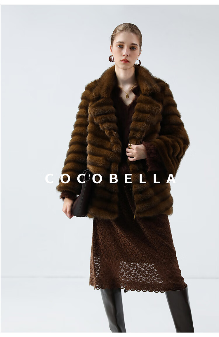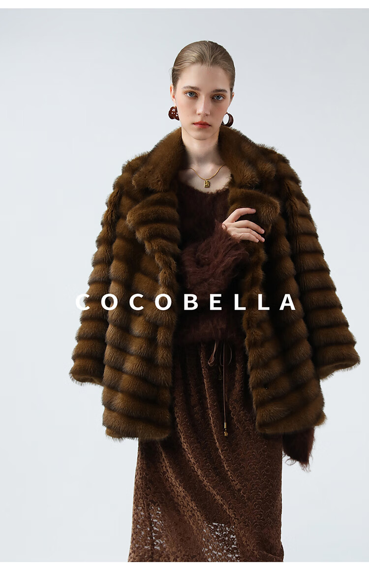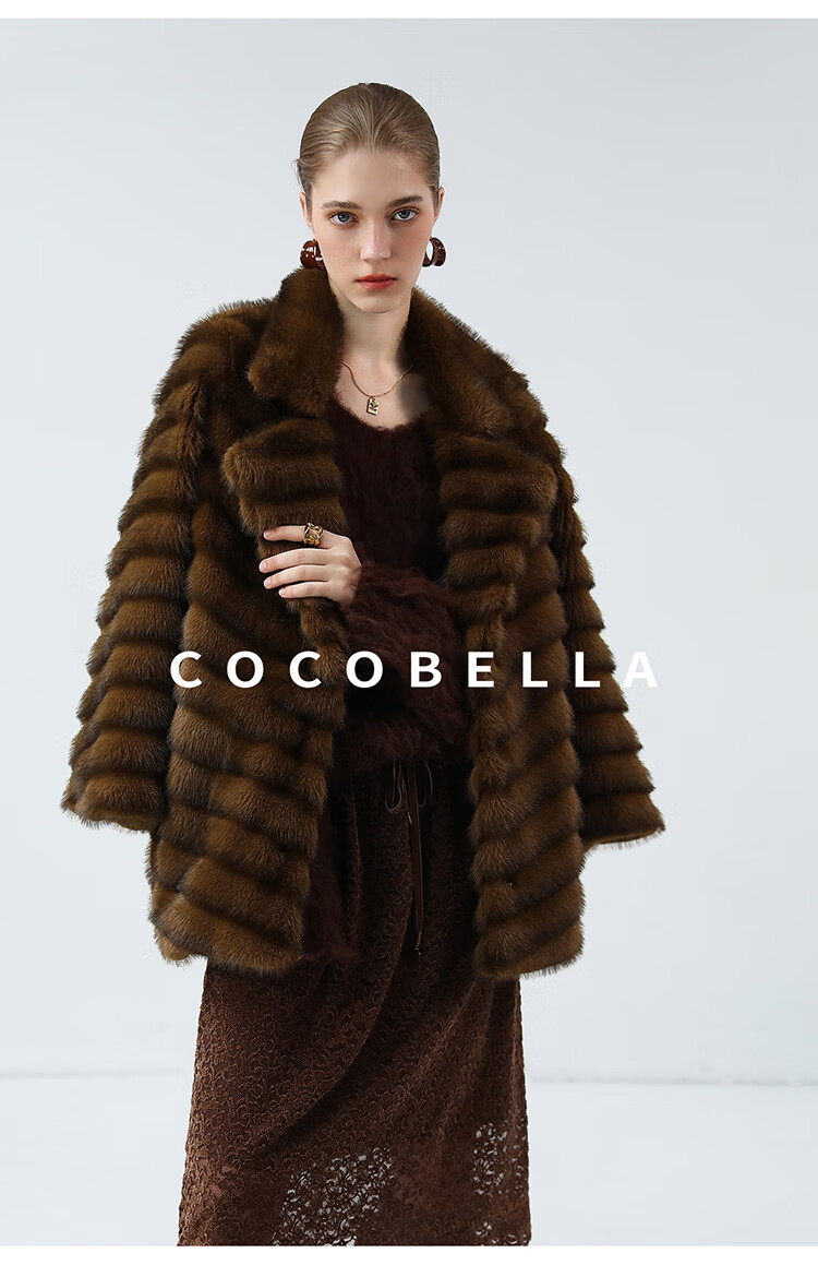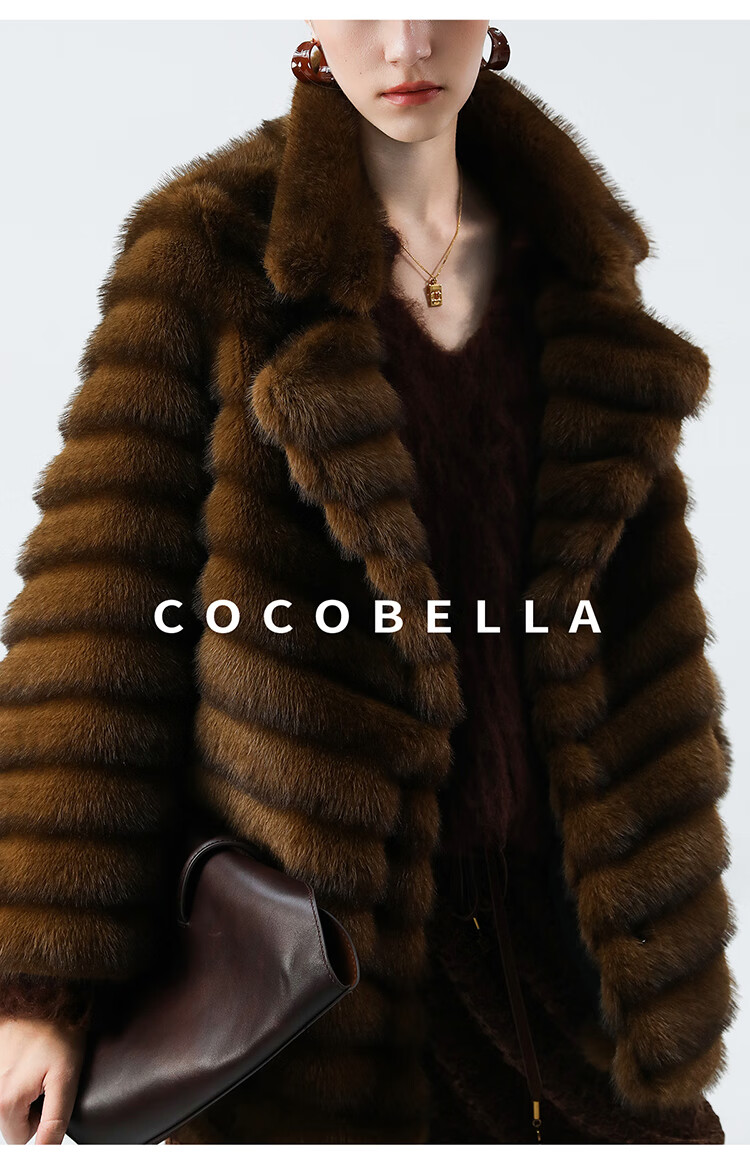 COCOBELLA仿水貂原色夹革环保皮草外套长款御寒大衣FU0007