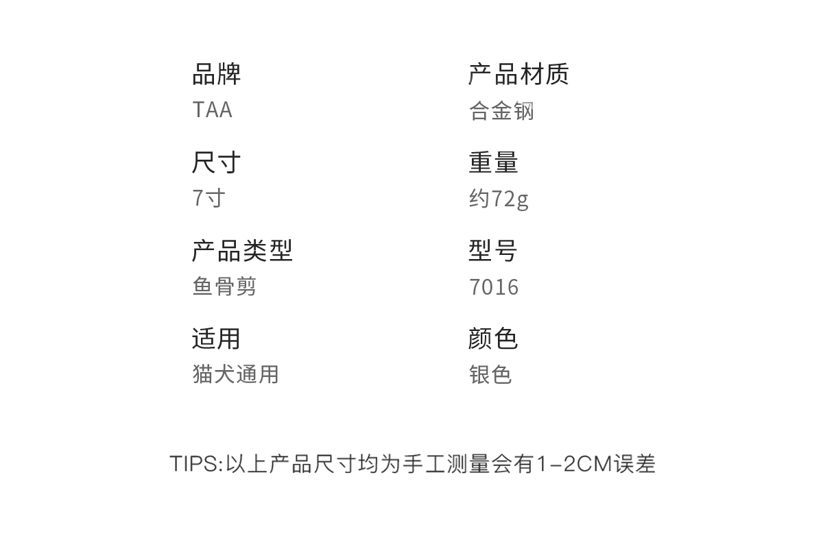 TAA它它宠物美容7寸鱼骨剪7016