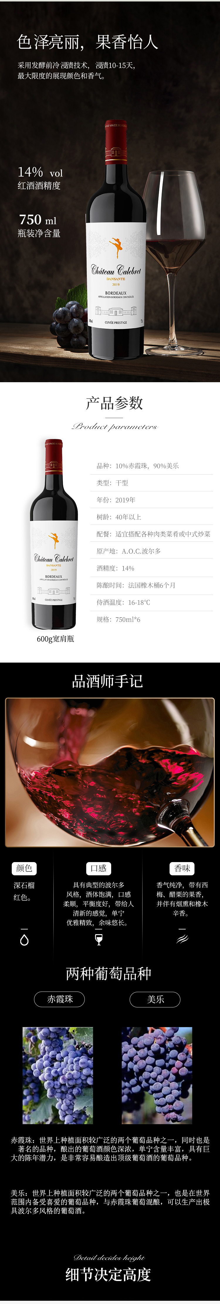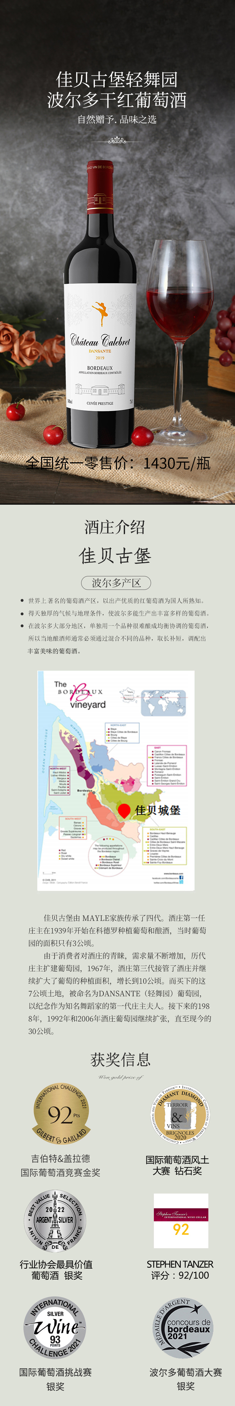佳贝城堡轻舞园波尔多干红葡萄酒(14度,750ml)