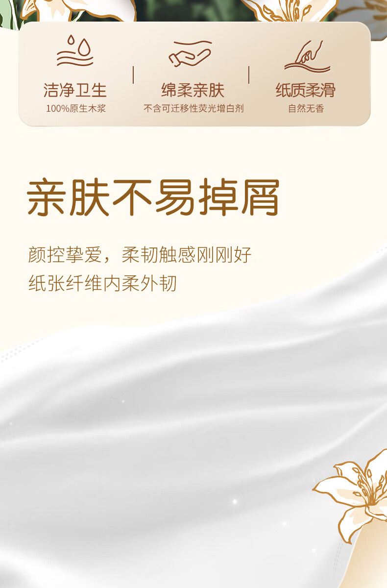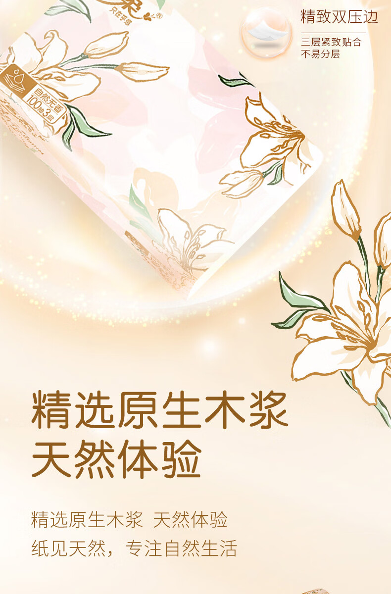 优选郁金香系列75克10粒装三层无芯卫生纸(橙花)单提