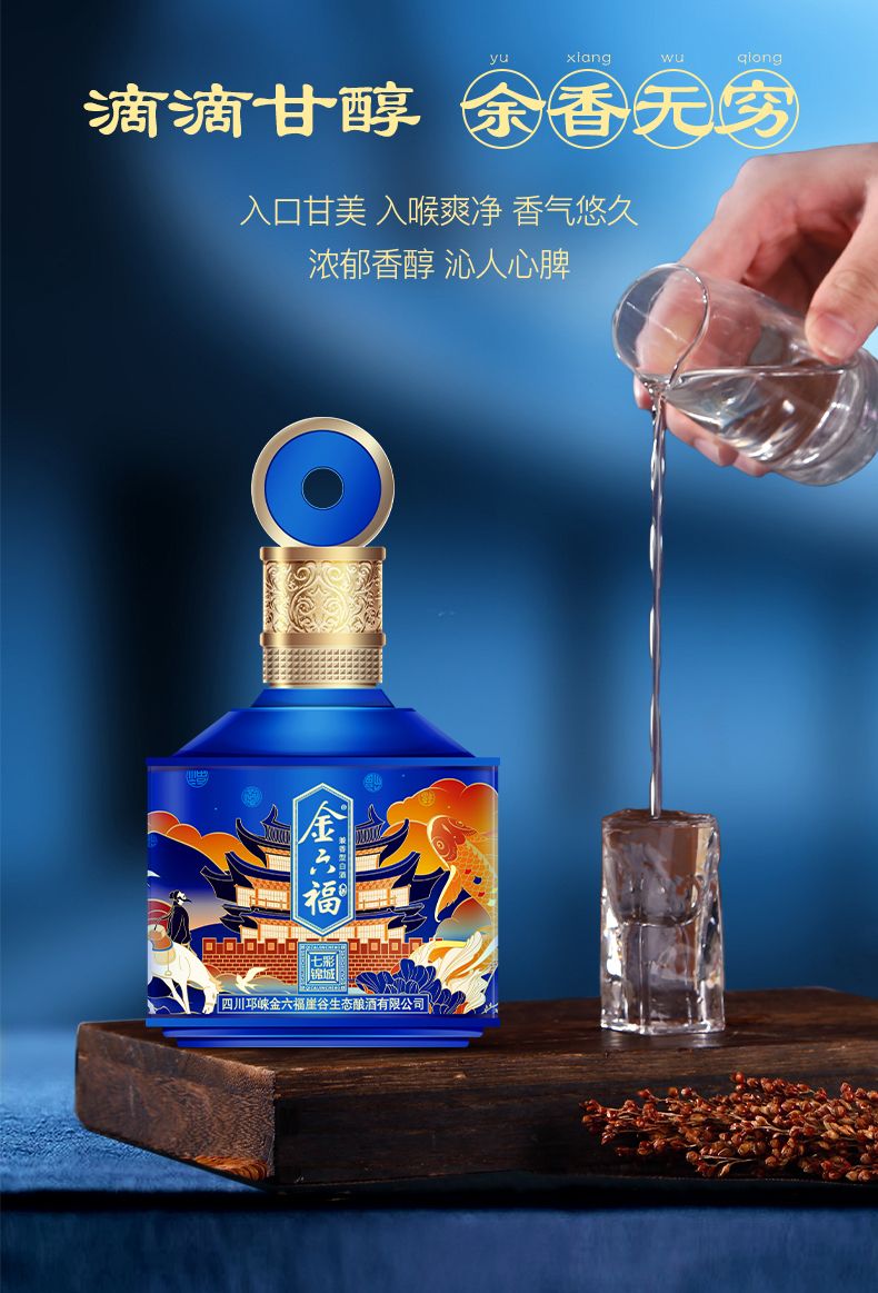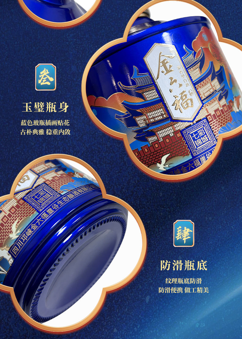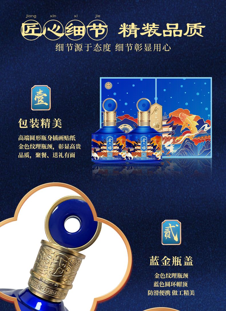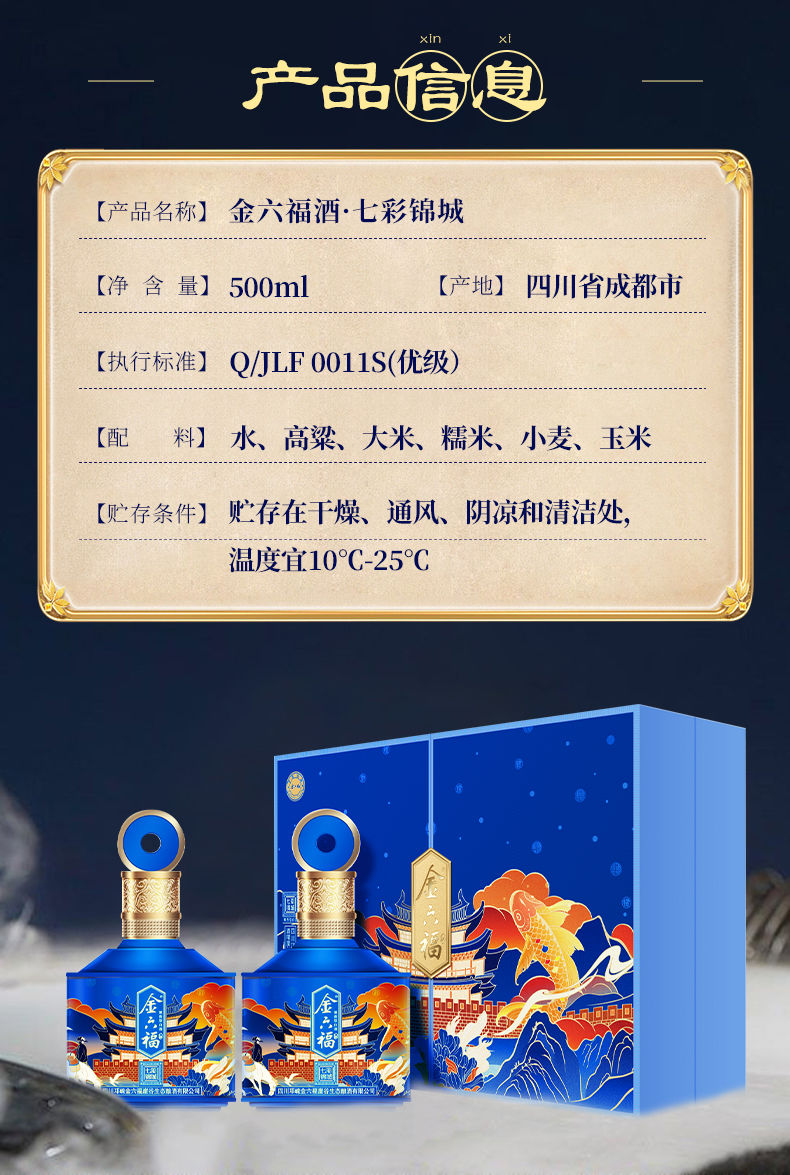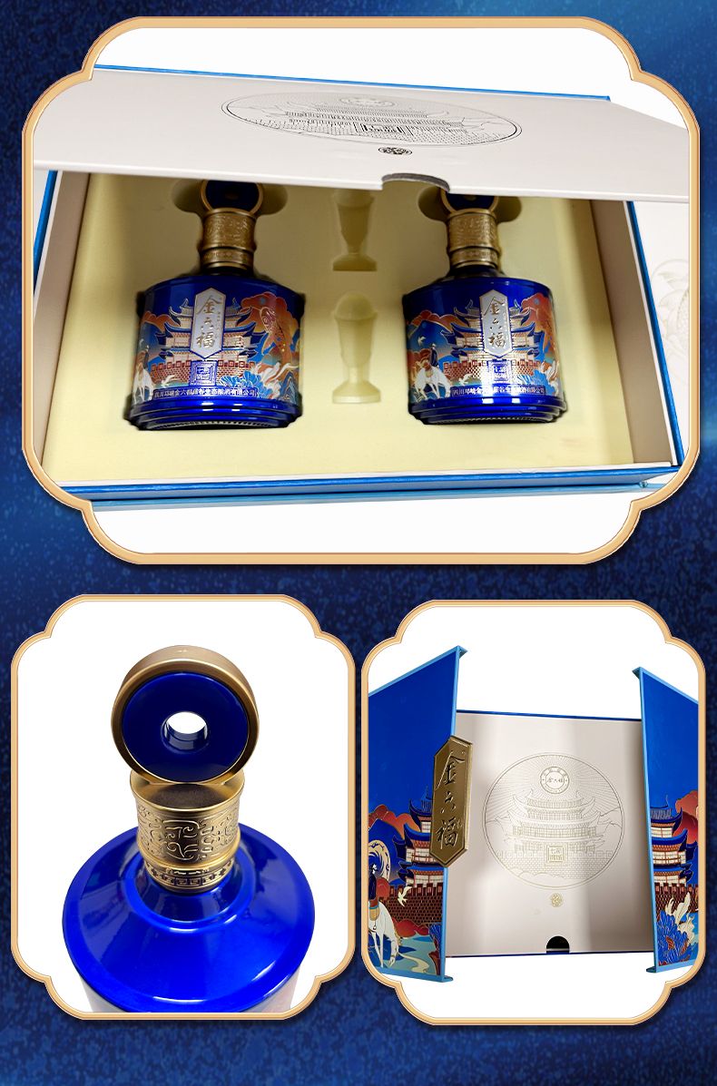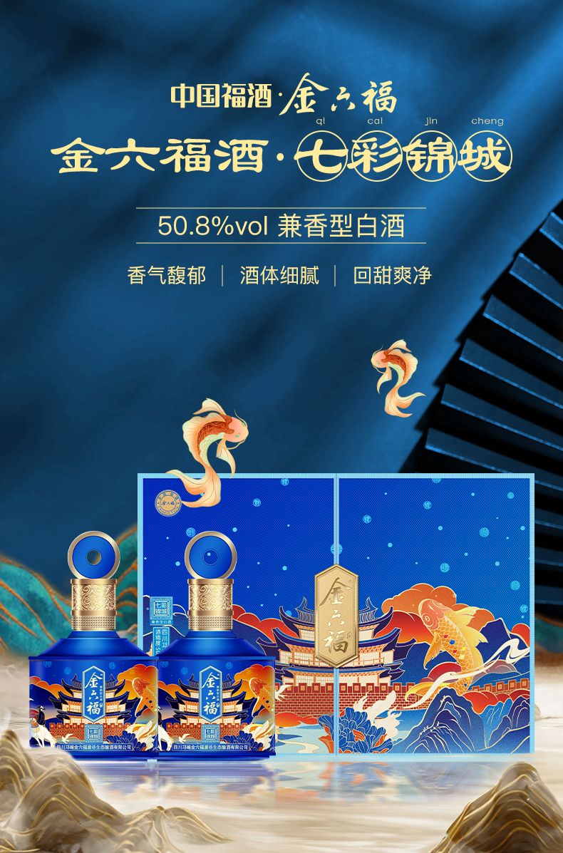 金六福七彩锦城50.8度双支礼盒装(蓝色)兼香型粮食白酒500ml*2瓶