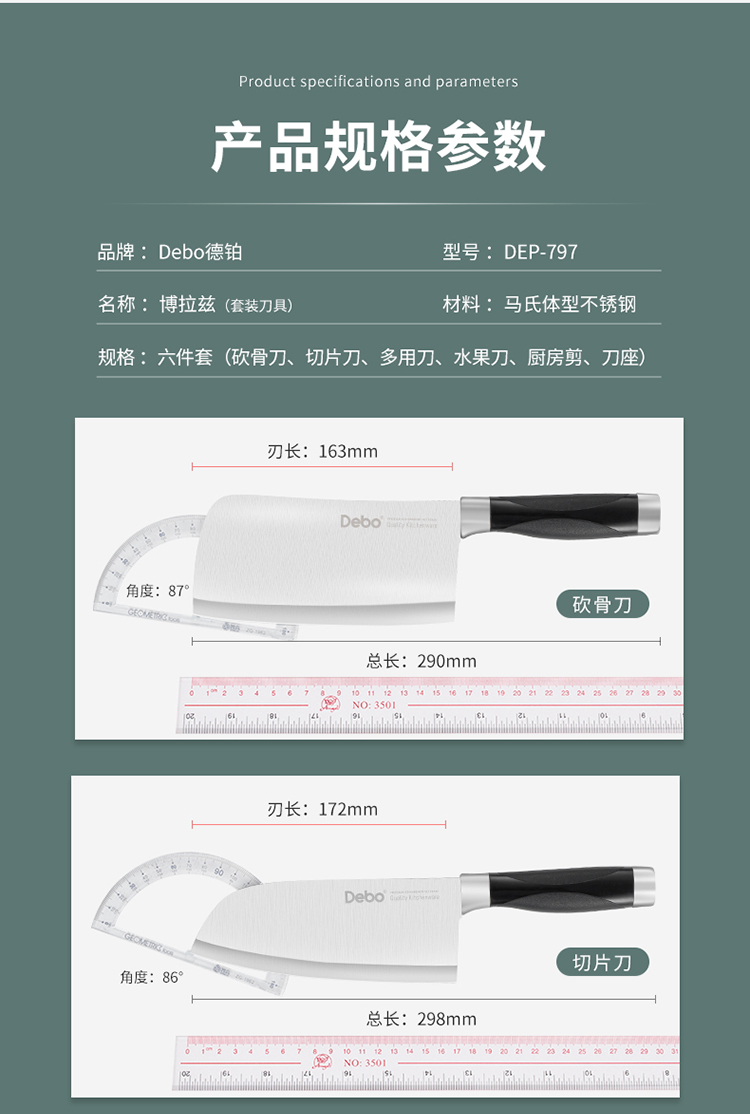 Debo德铂博拉兹不锈钢刀具套装中西式菜刀砍骨刀家用厨房组合刀具