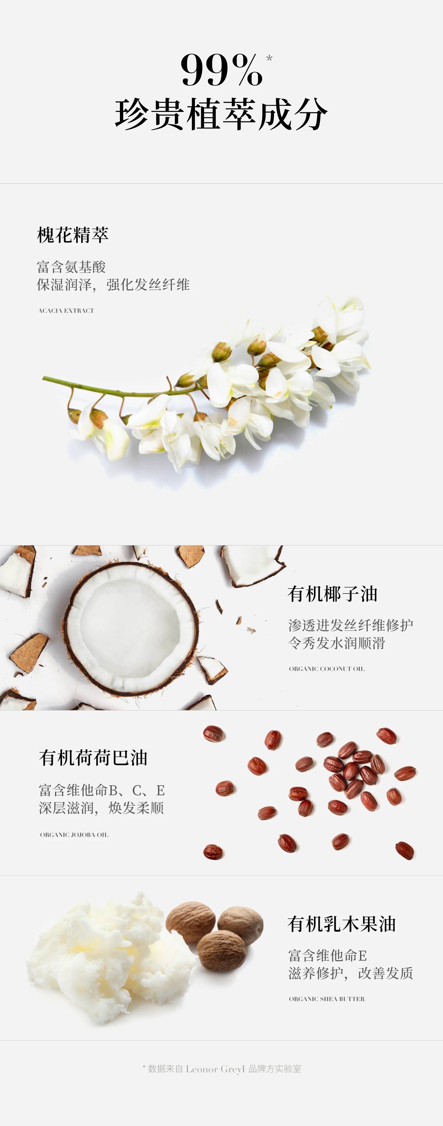 98%天然配方純素配方滋養、柔軟秀髮,解開纏結髮絲強韌髮絲,減少折斷美化鬈髮造型適合: 乾旱、厚或飛散的髮質