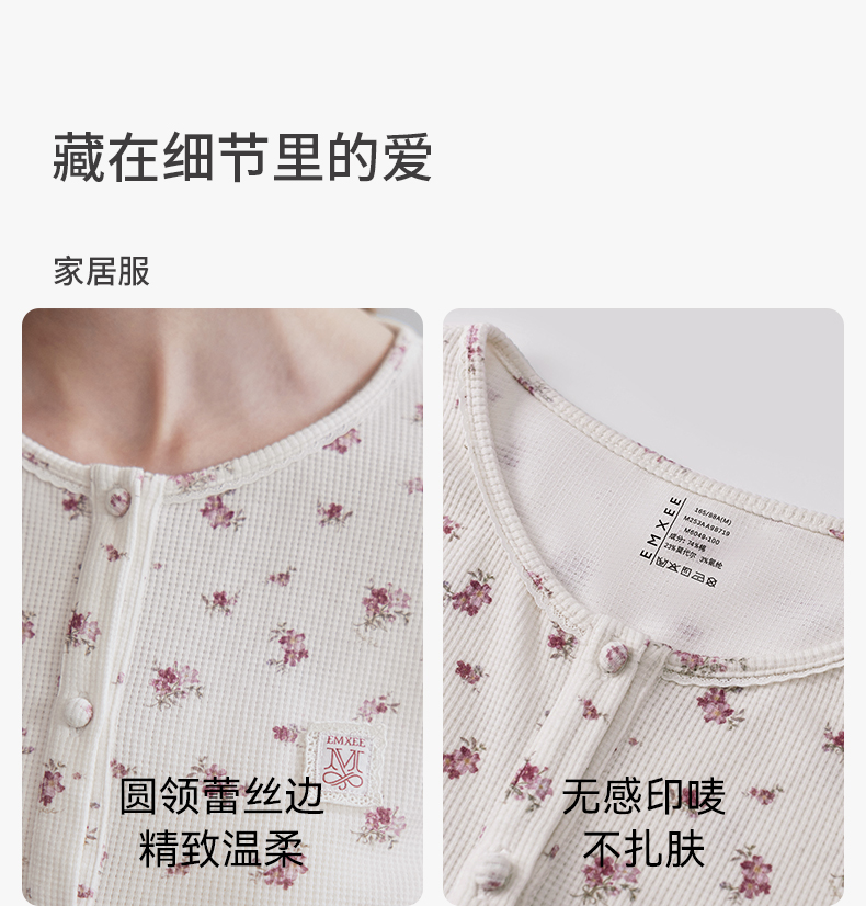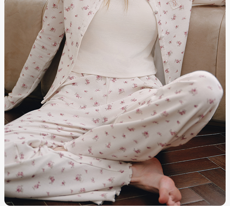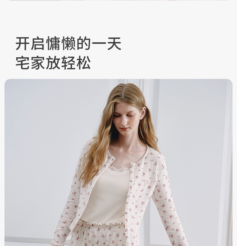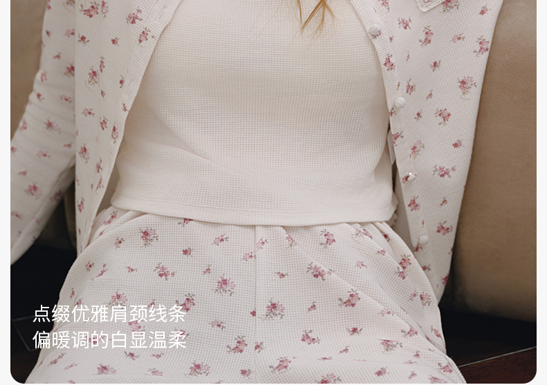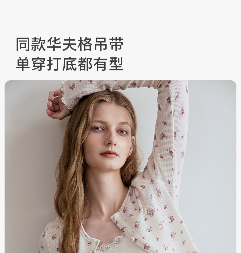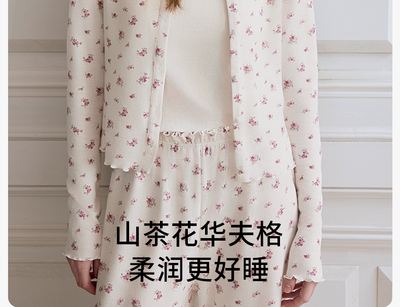 【家居服专场】嫚熙秋冬季山茶花华夫格女士睡衣吊带可外穿家居服套装2025新款