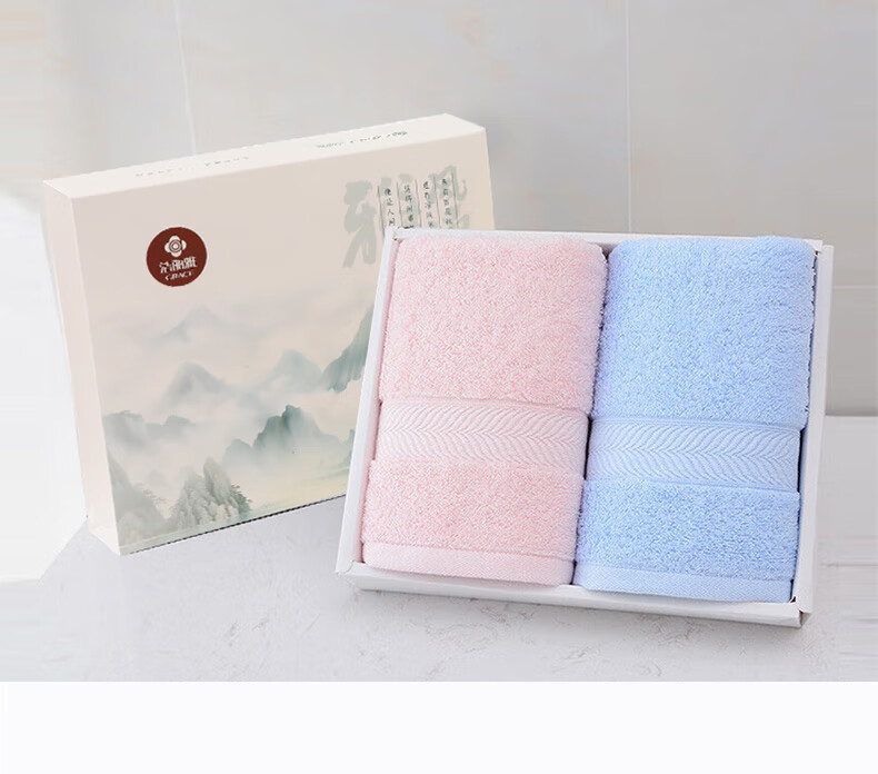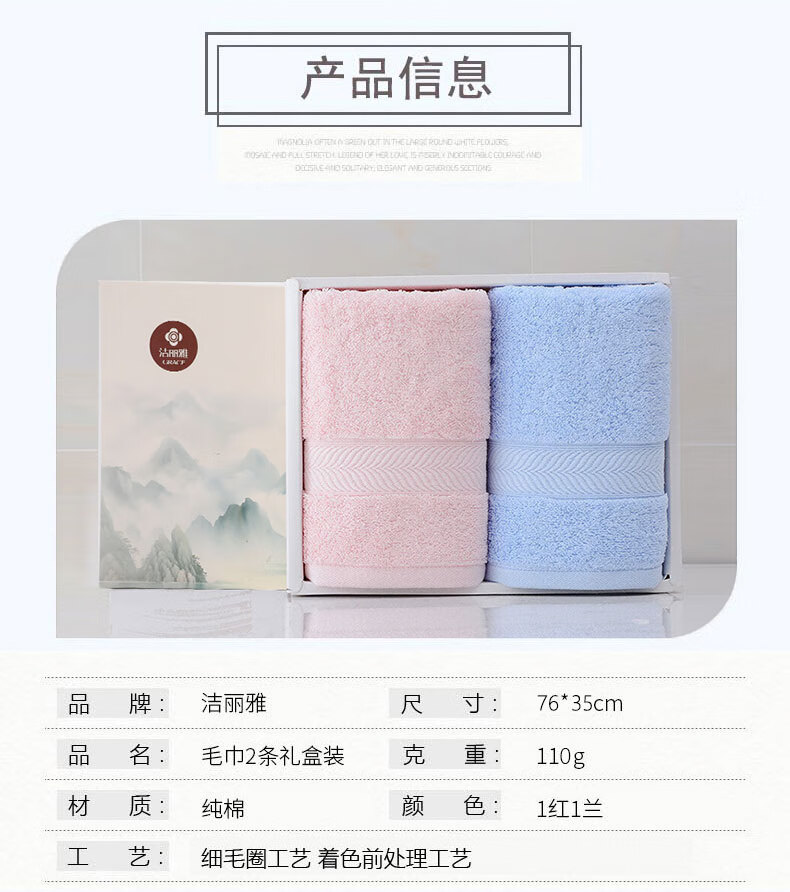 洁丽雅 纯棉毛圈毛巾2条礼盒装( 红+兰 )110g/条 6732