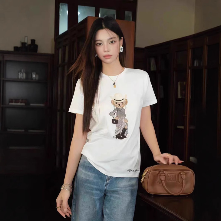 💰85元包邮 RL 拉夫 重工刺绣 晚礼服亮片小熊 短袖T恤