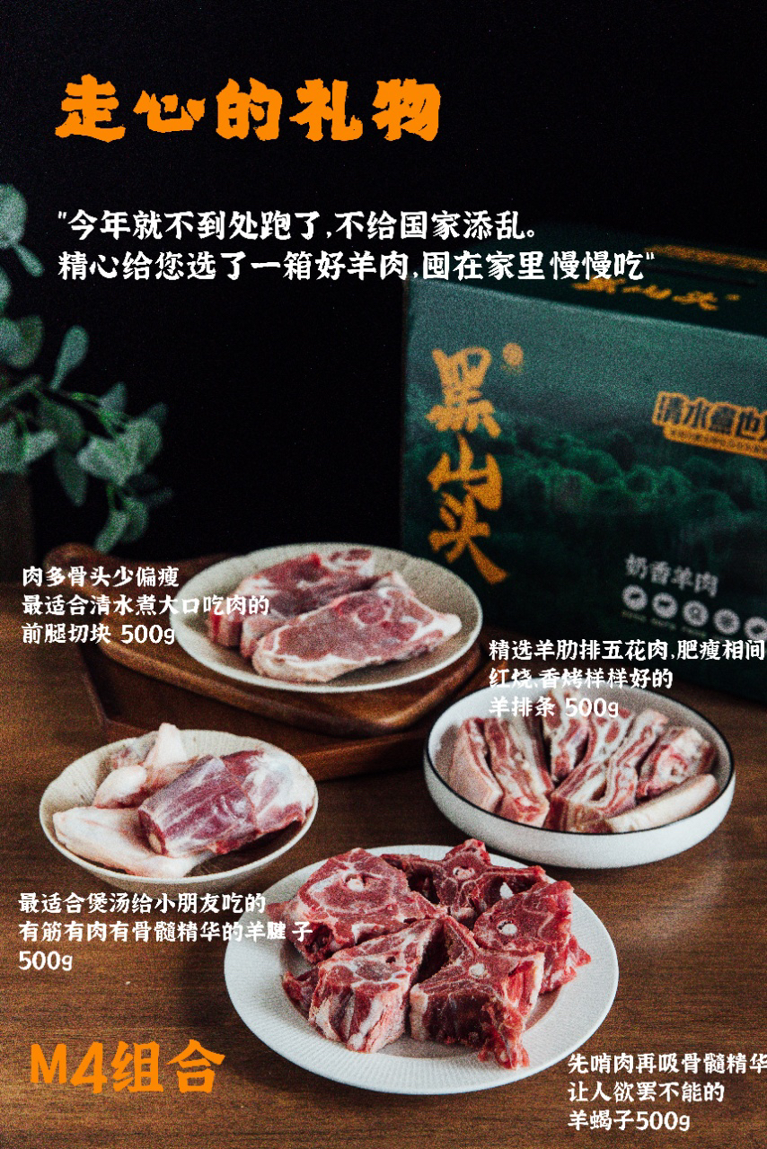 套餐B:羊排条500g*1+前腿切块500g*1+羊腱子500g*1+羊蝎子500g*1