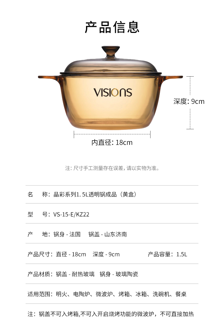 【自营】 康宁 晶彩系列透明锅 明火直烧不破裂 多规格