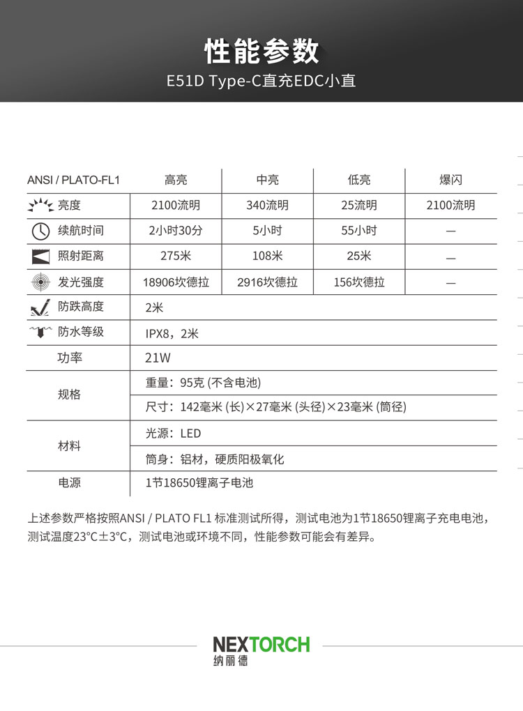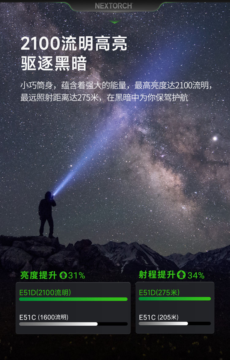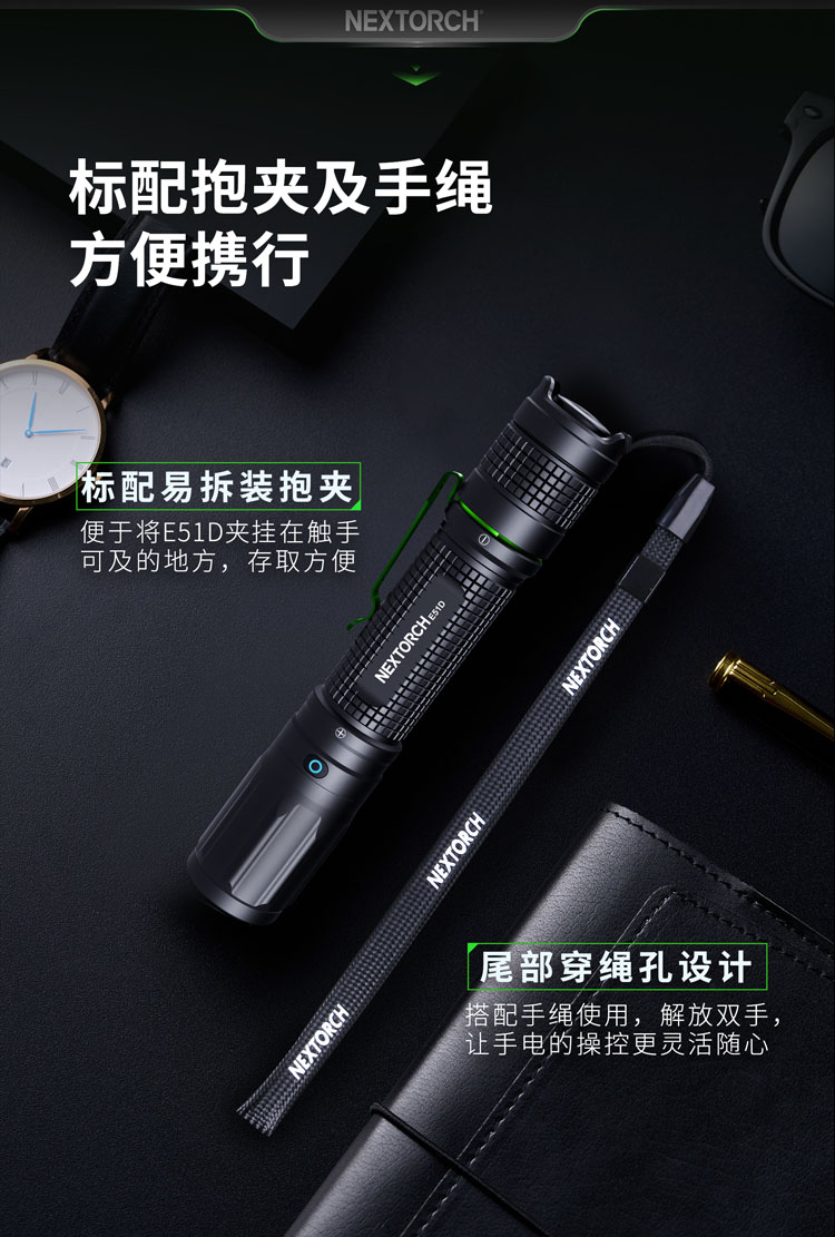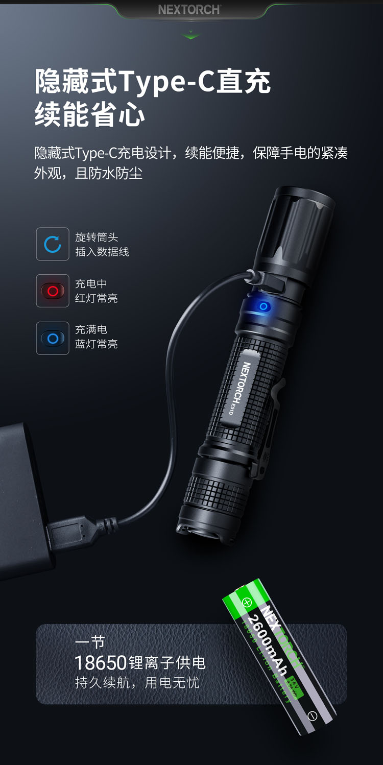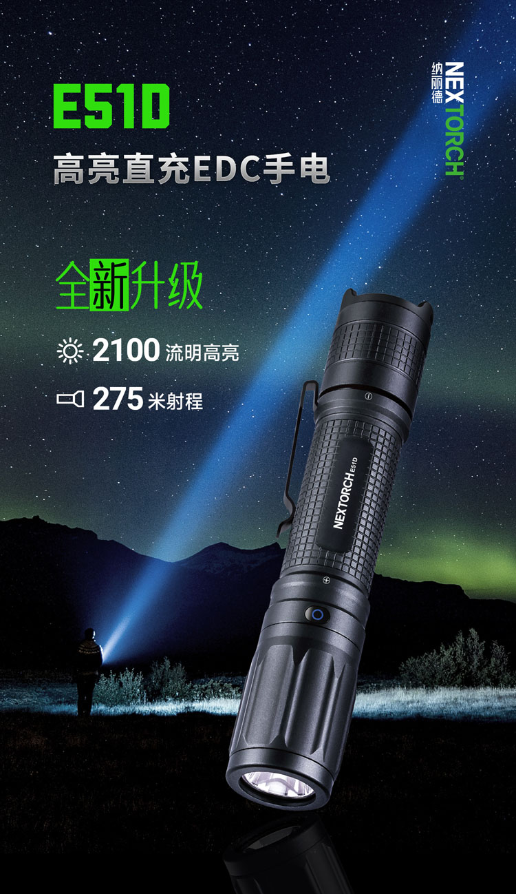 纳丽德E51D手电筒高亮户外小直筒充电手电