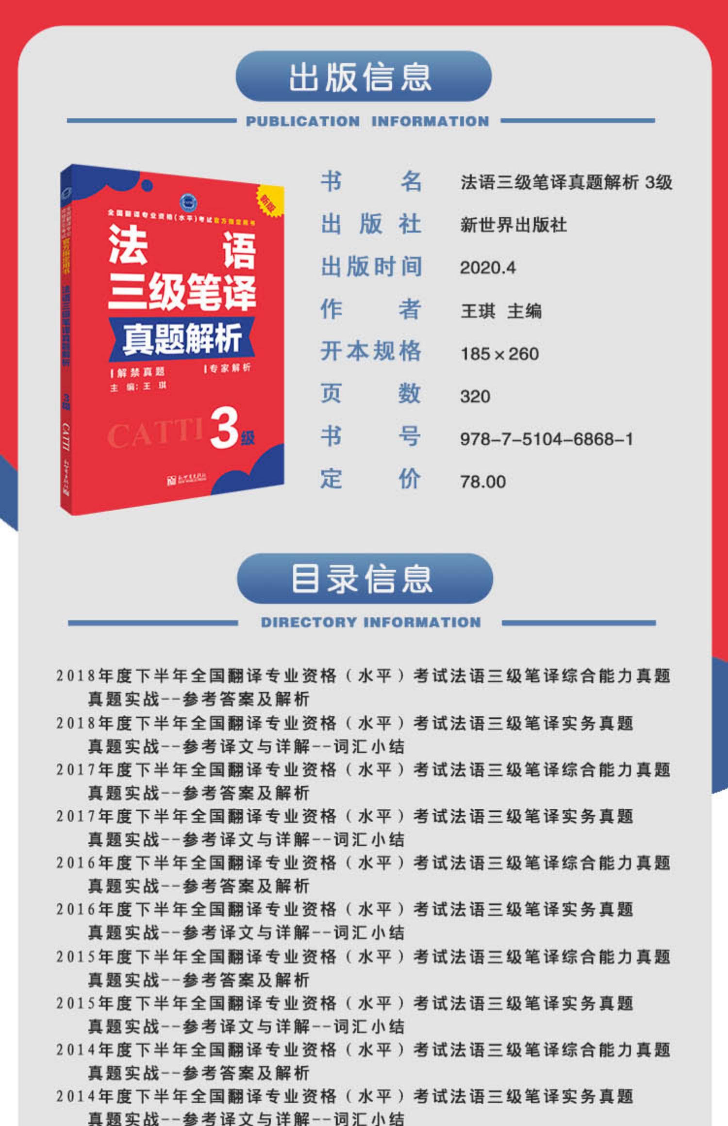 2026catti法语三级笔译真题解析 全国翻译资格考试用书