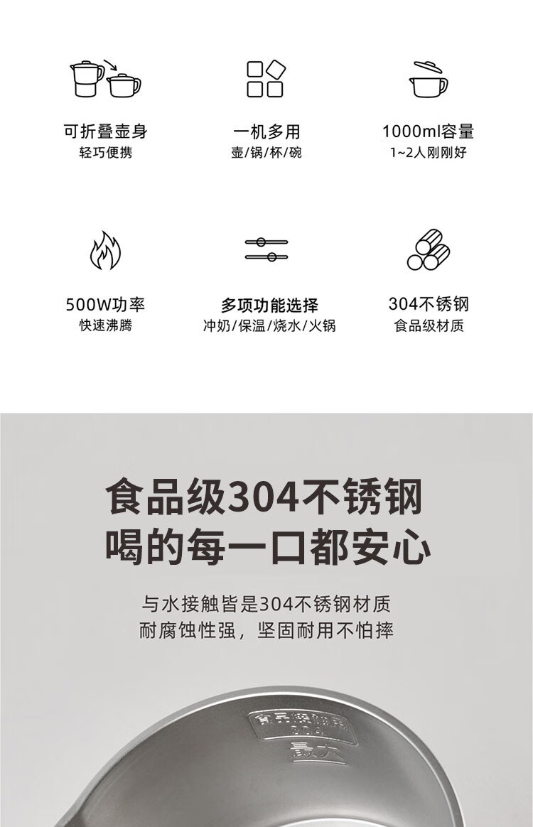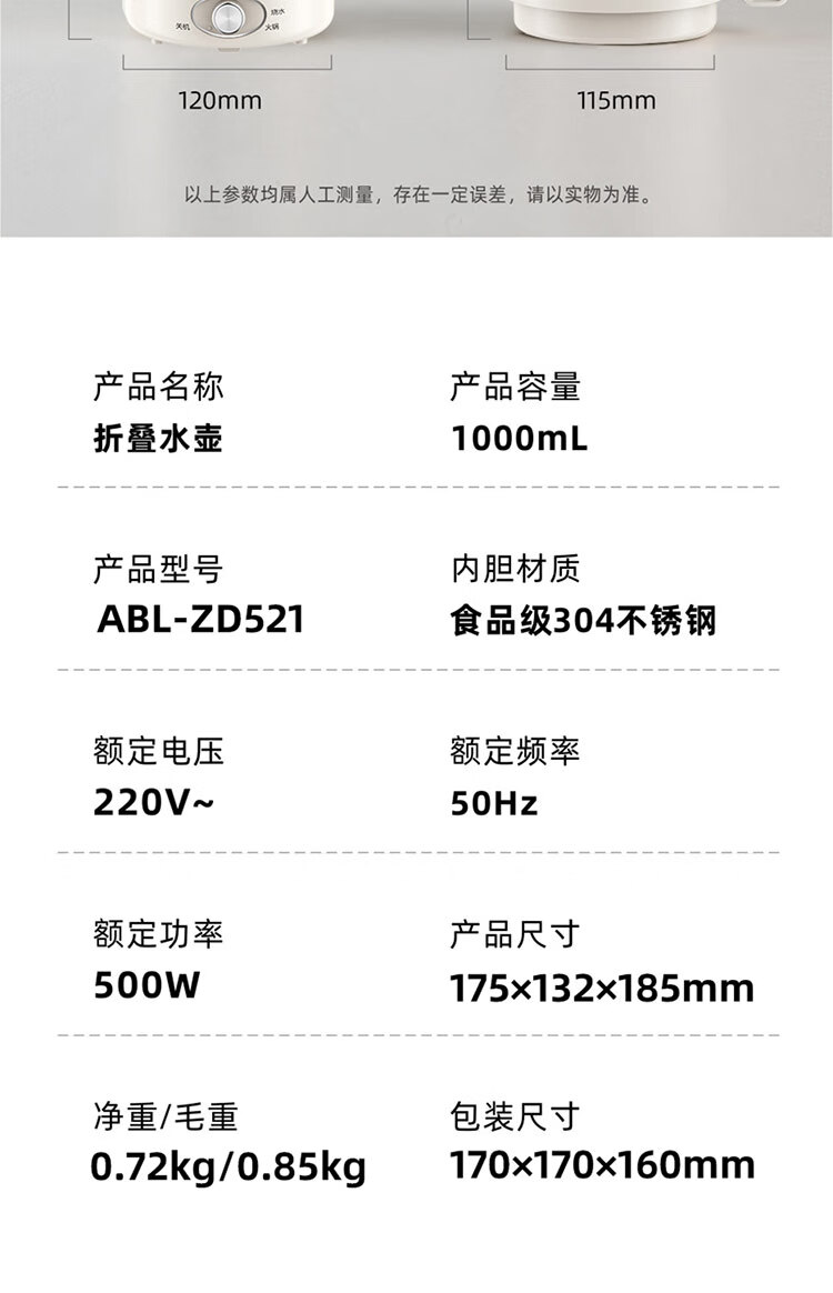 【小家电】Abereve艾贝丽便携式多功能折叠水壶ABL-ZD521 HF