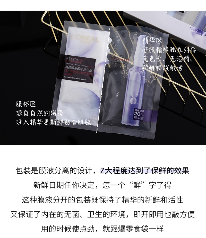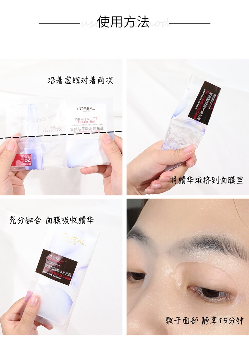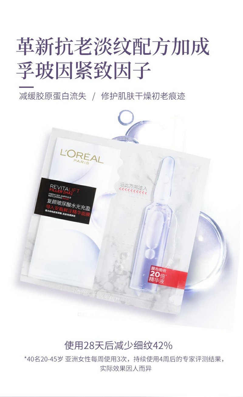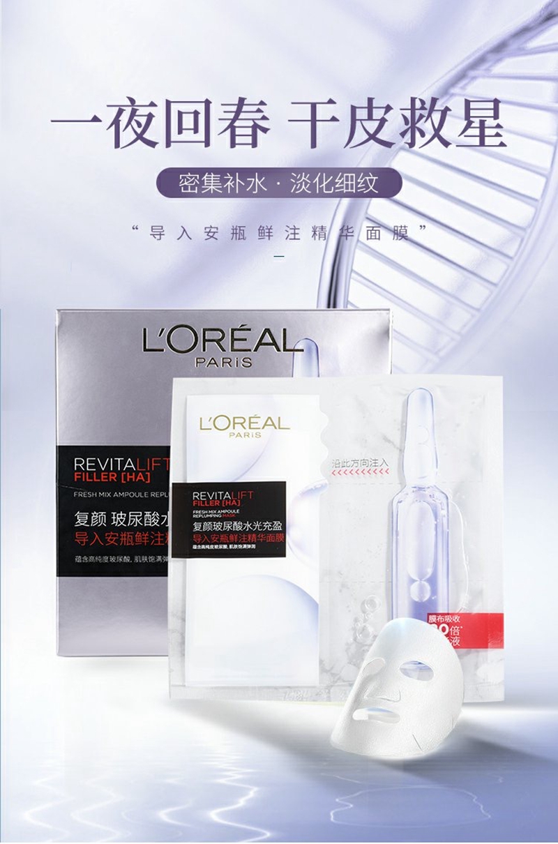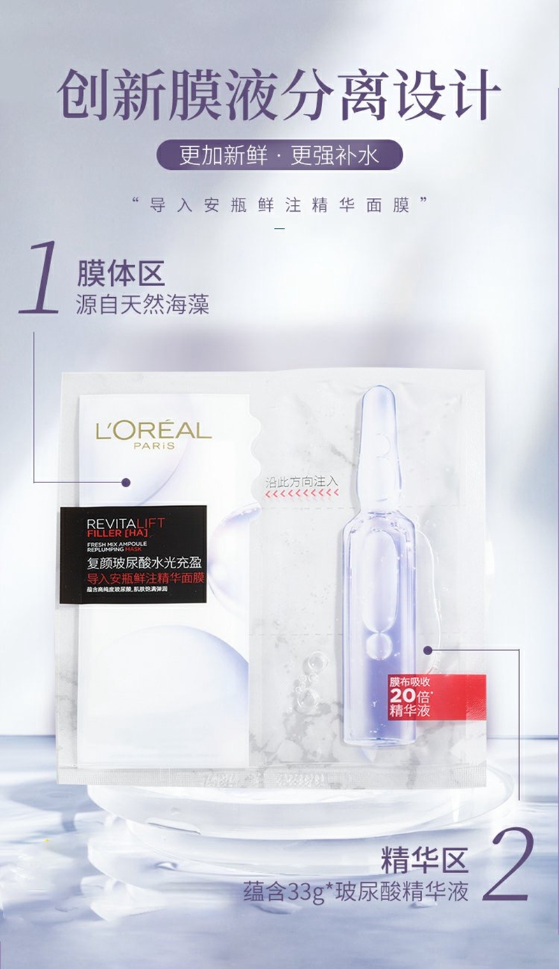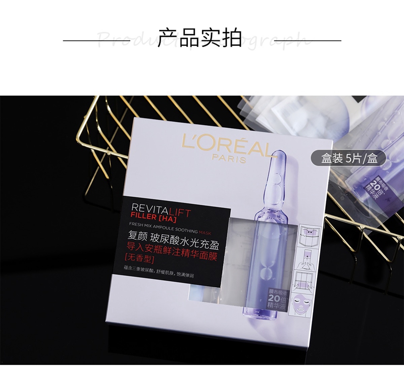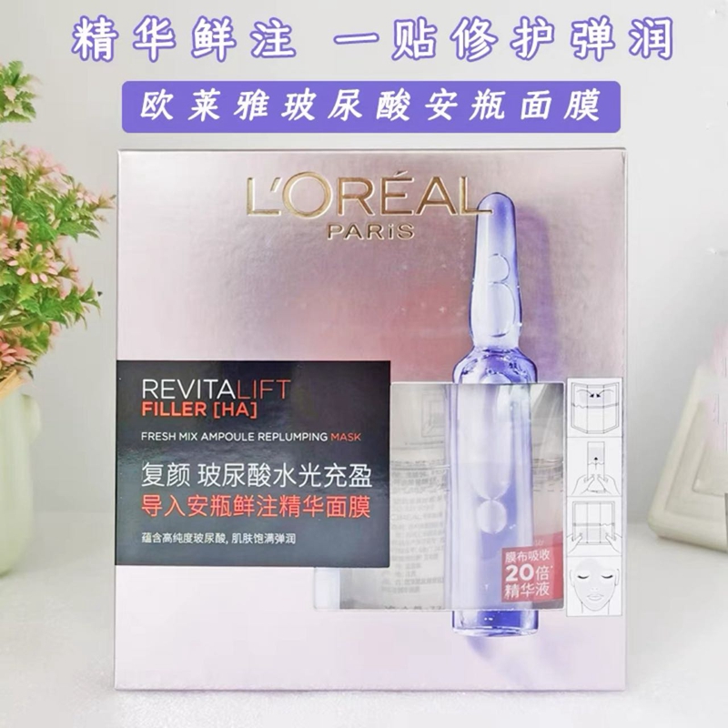 欧莱雅复颜玻尿酸水光安瓶精华面膜5片装