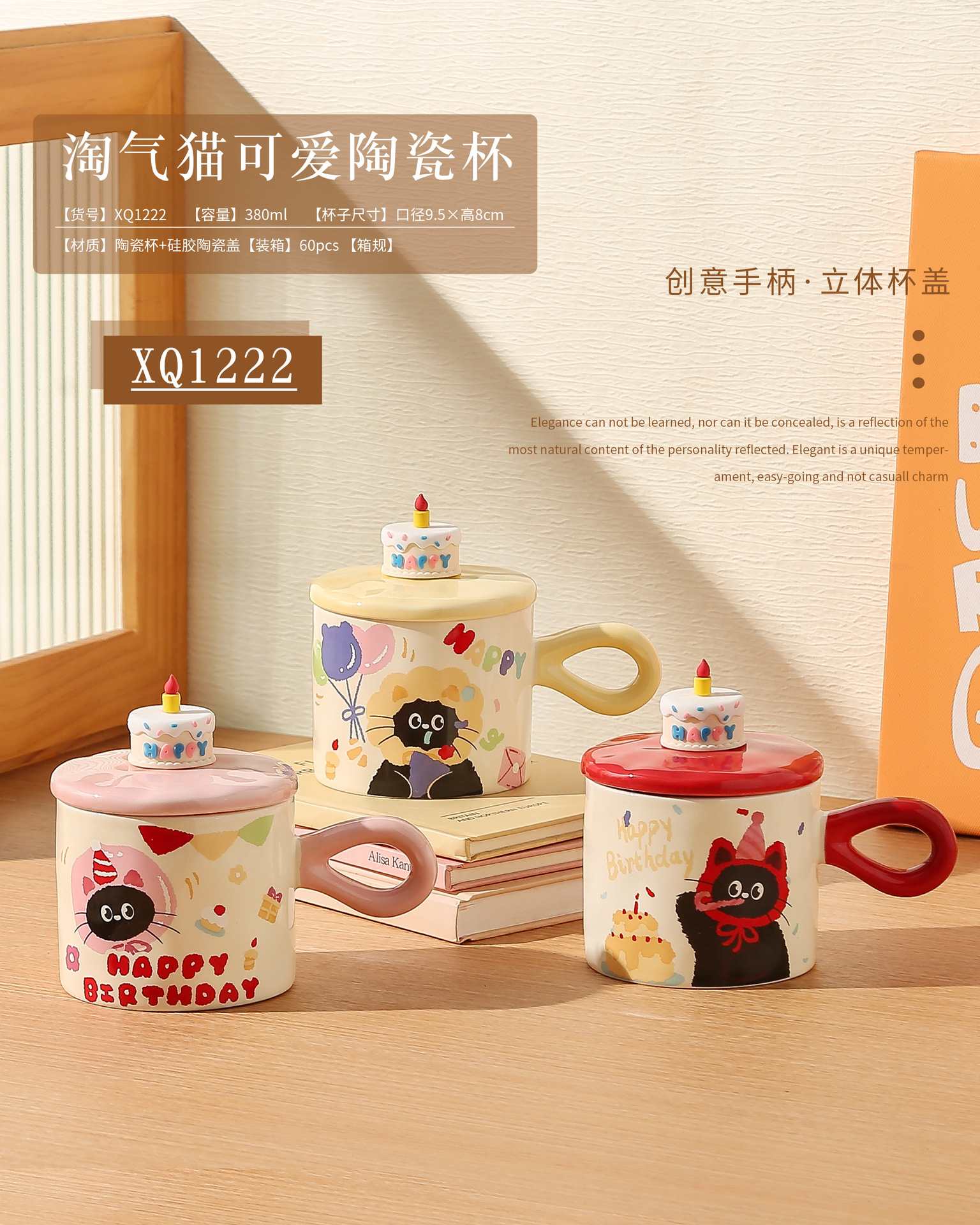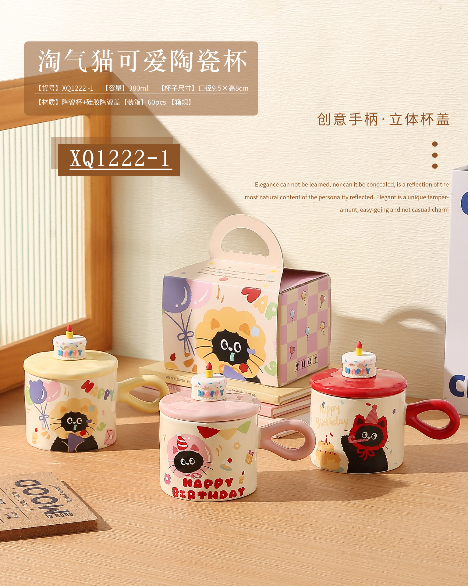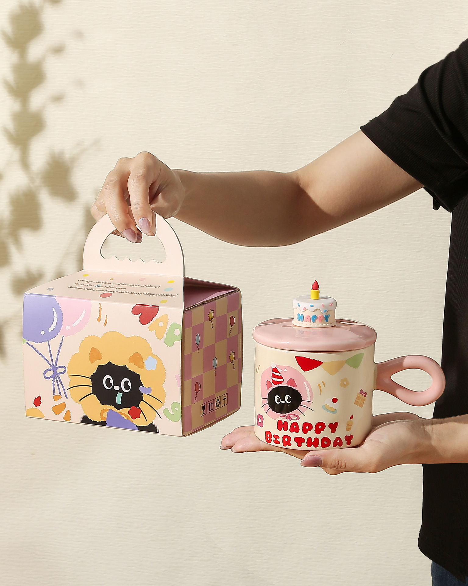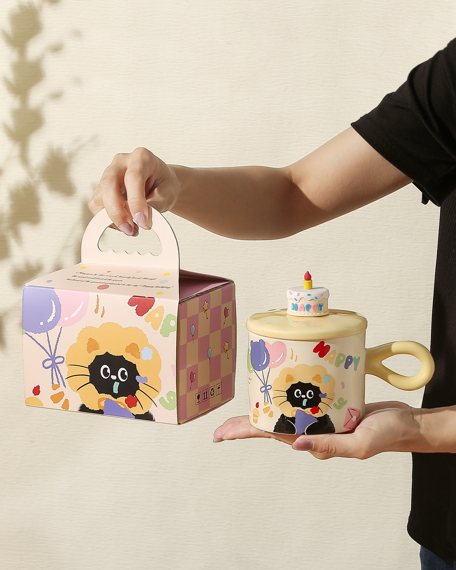 可爱卡通猫咪陶瓷马克杯情侣水杯高颜值礼盒伴手礼生日礼物早餐杯