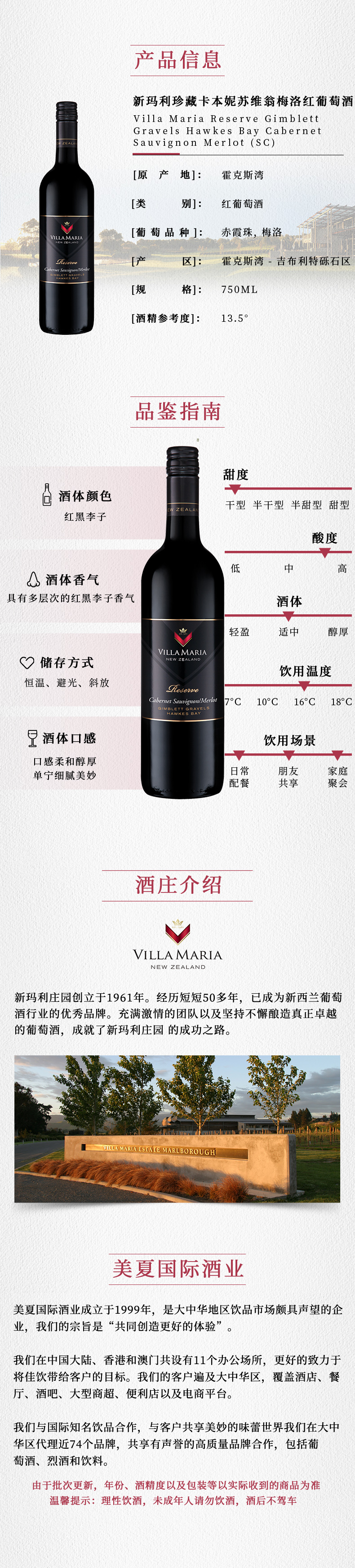 进口新西兰新玛利珍藏卡本妮苏维翁梅洛红葡萄酒750ml