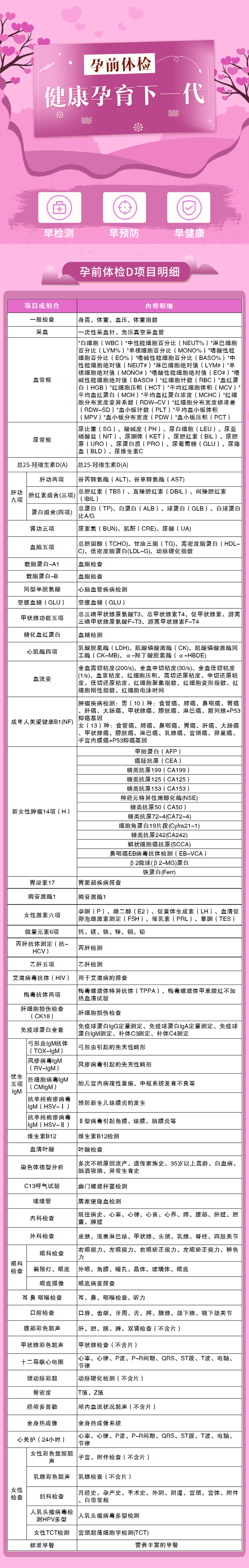 【孕前套餐D】深入孕前检查项目 优生优育 准爸妈孕前体检套餐