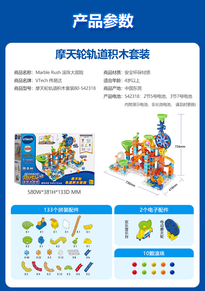 伟易达 80-542318 滚珠大冒险 摩天轮轨道积木套装
