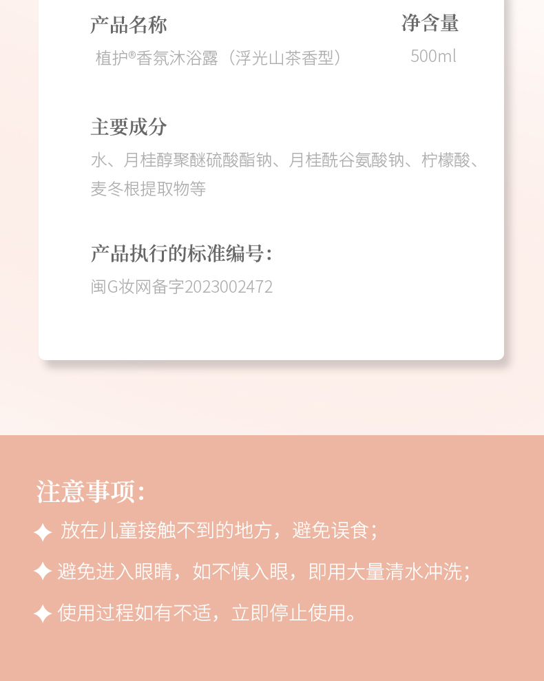 【会员福利 积分兑换】植护山茶花沐浴露持久留香72小时香水型男女士保湿