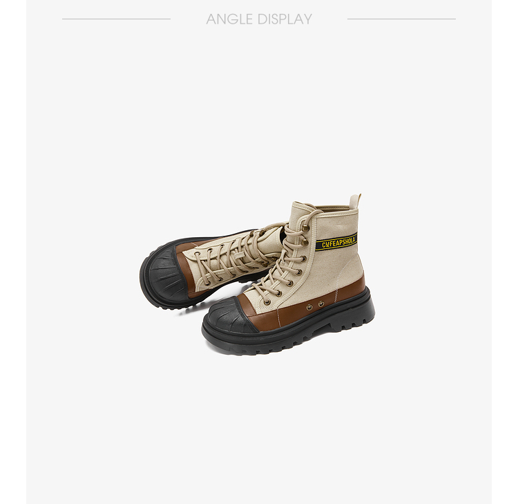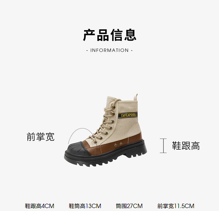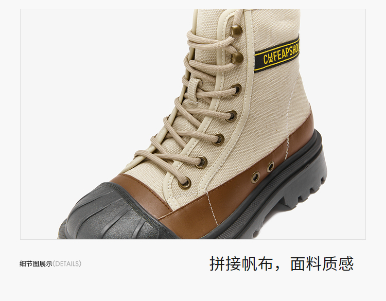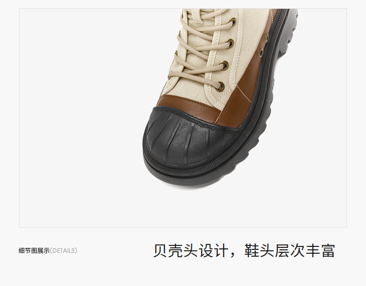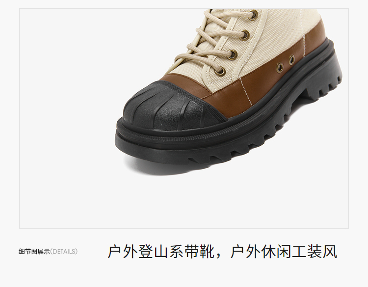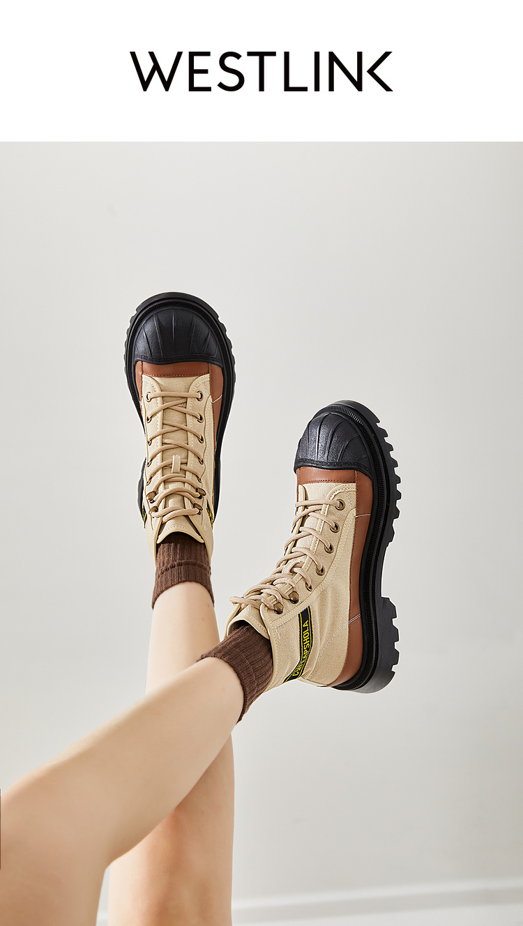 西遇厚底马丁靴女新款秋季贝壳头户外登山工装靴子高帮帆布鞋D0033980