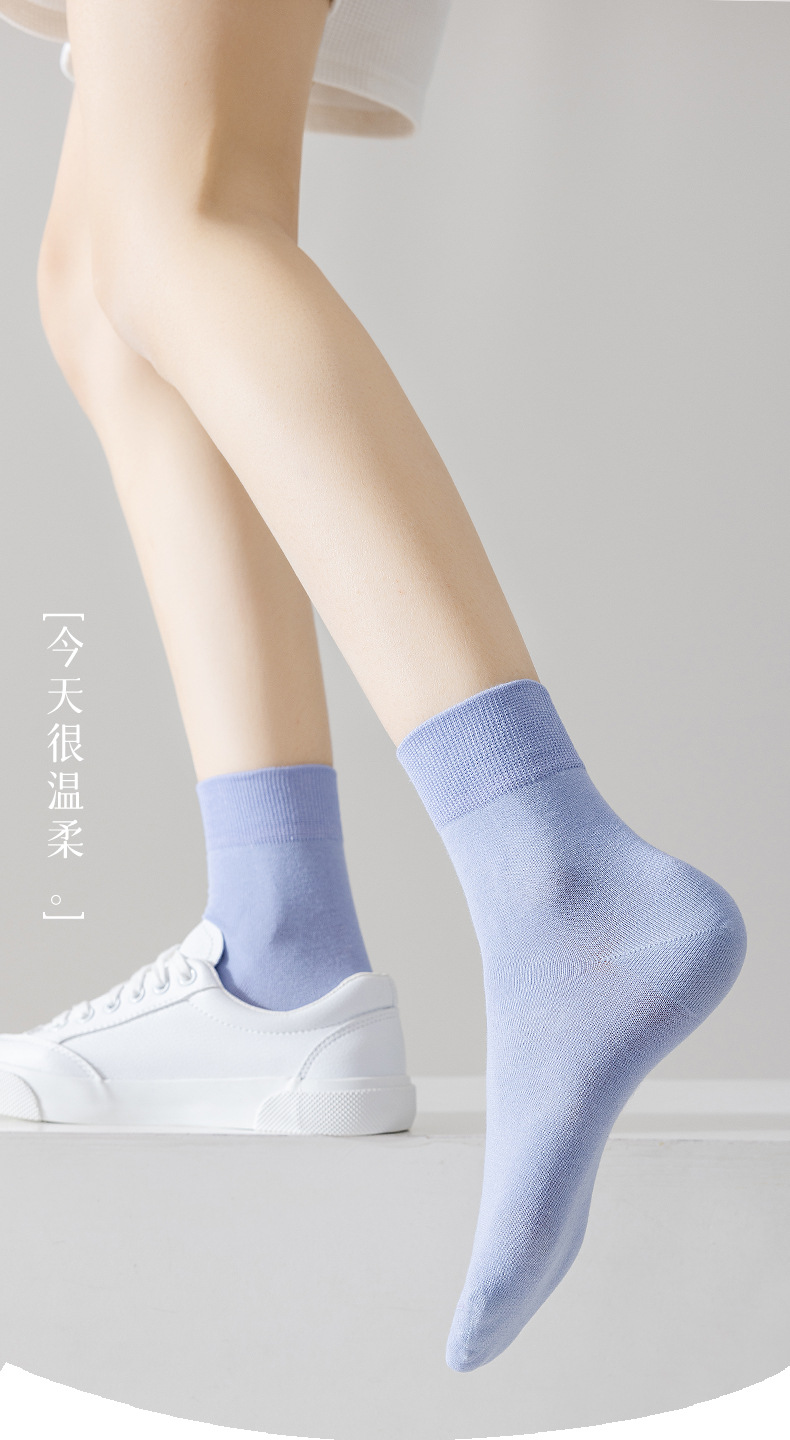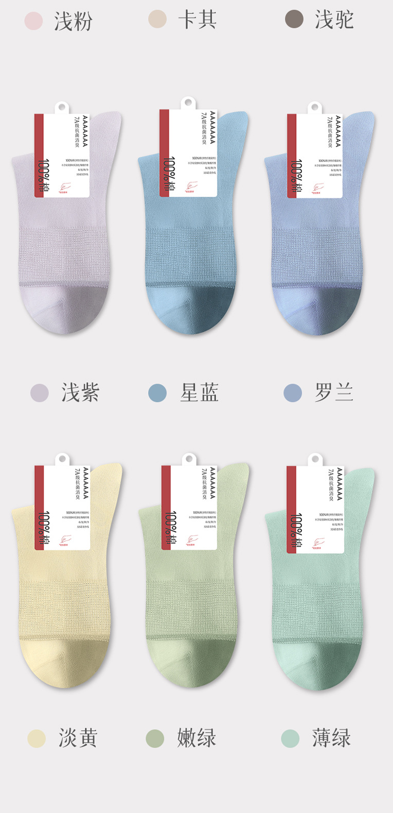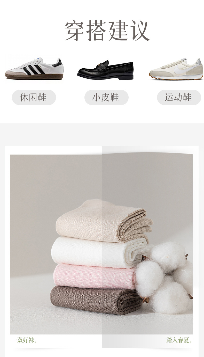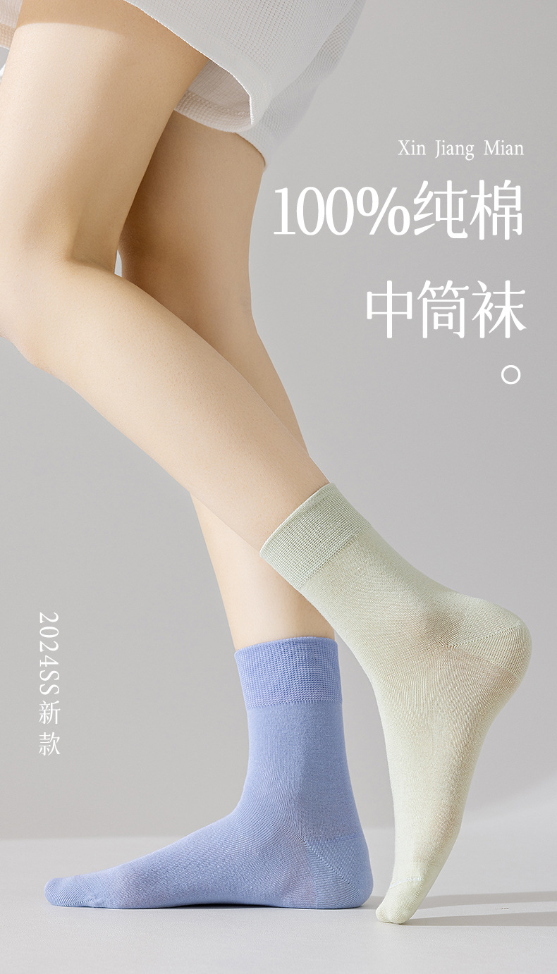 「6双装!新疆棉至柔脚感」纯棉袜子女中筒春夏薄款吸汗透气无骨白色棉袜配饰