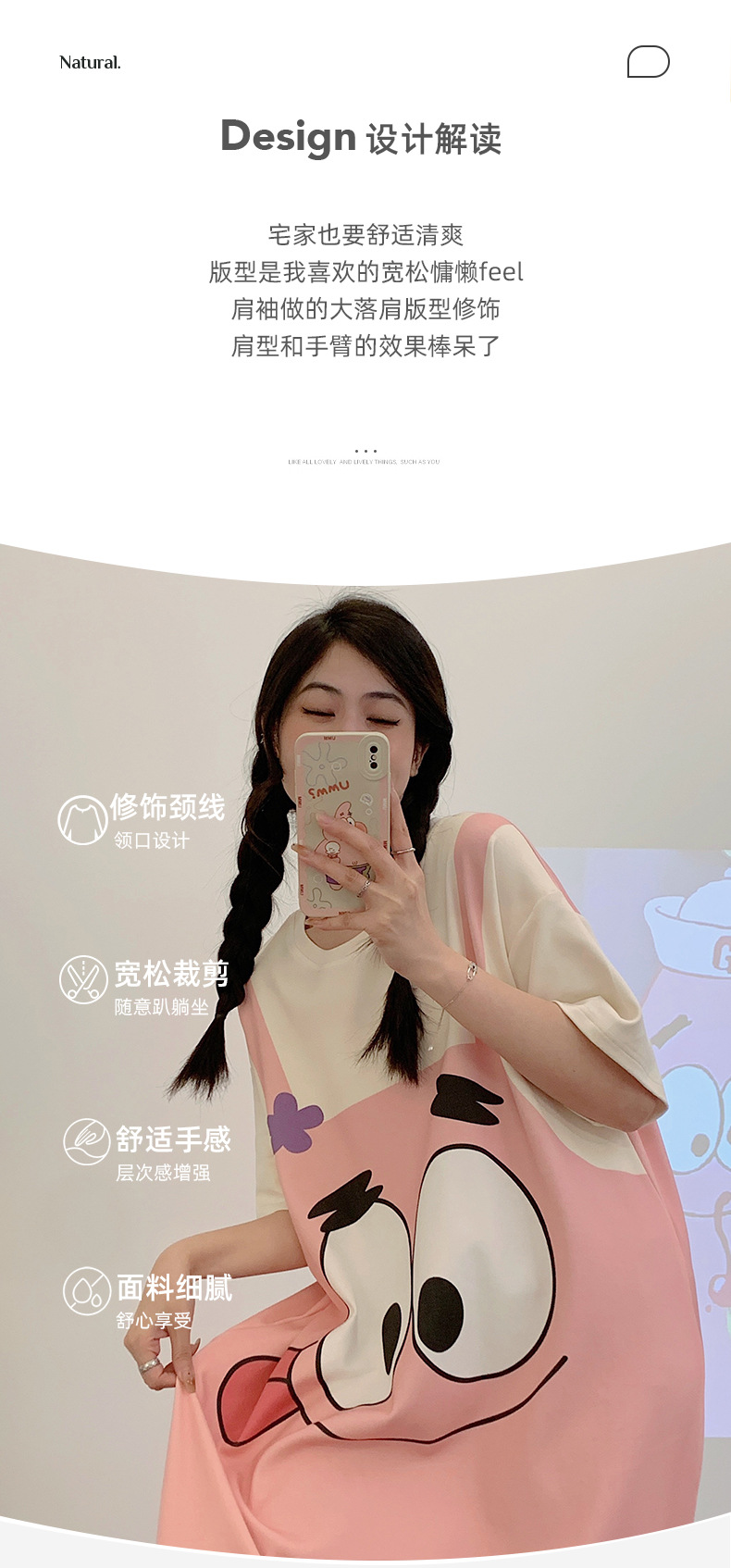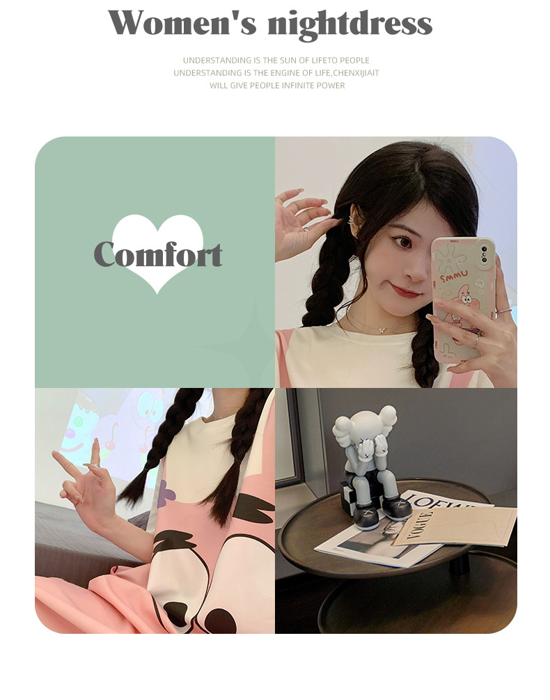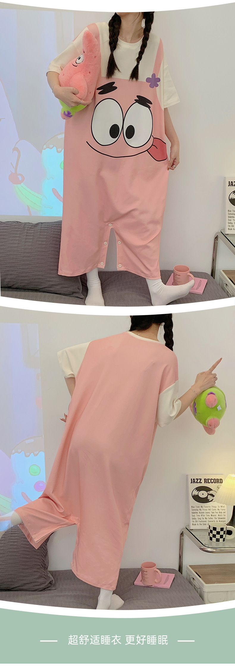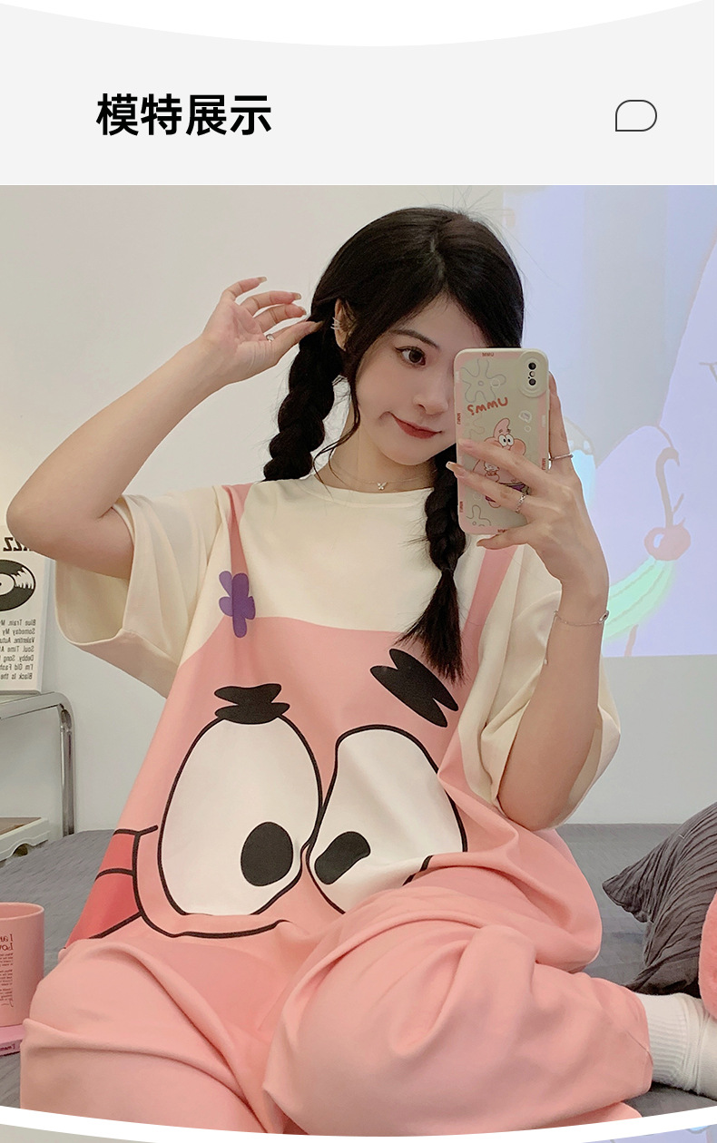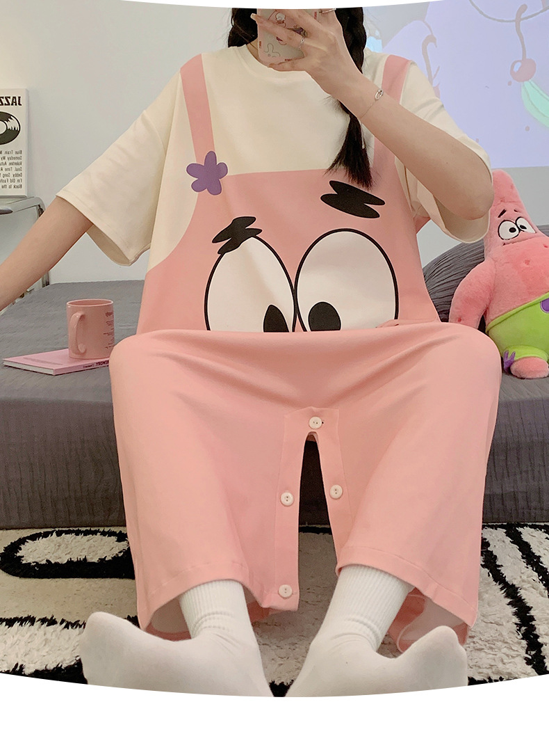 【卡通派大星连体睡衣女】夏日必备,精致连体短裙睡衣。舒适纯棉材质,亲肤透气,轻盈飘逸。多彩大嘴星纹,激发青春活力,大码超宽松设计,缔造温馨宜人的居家时光。