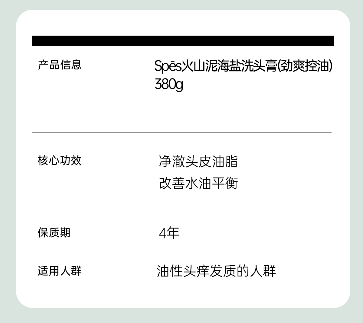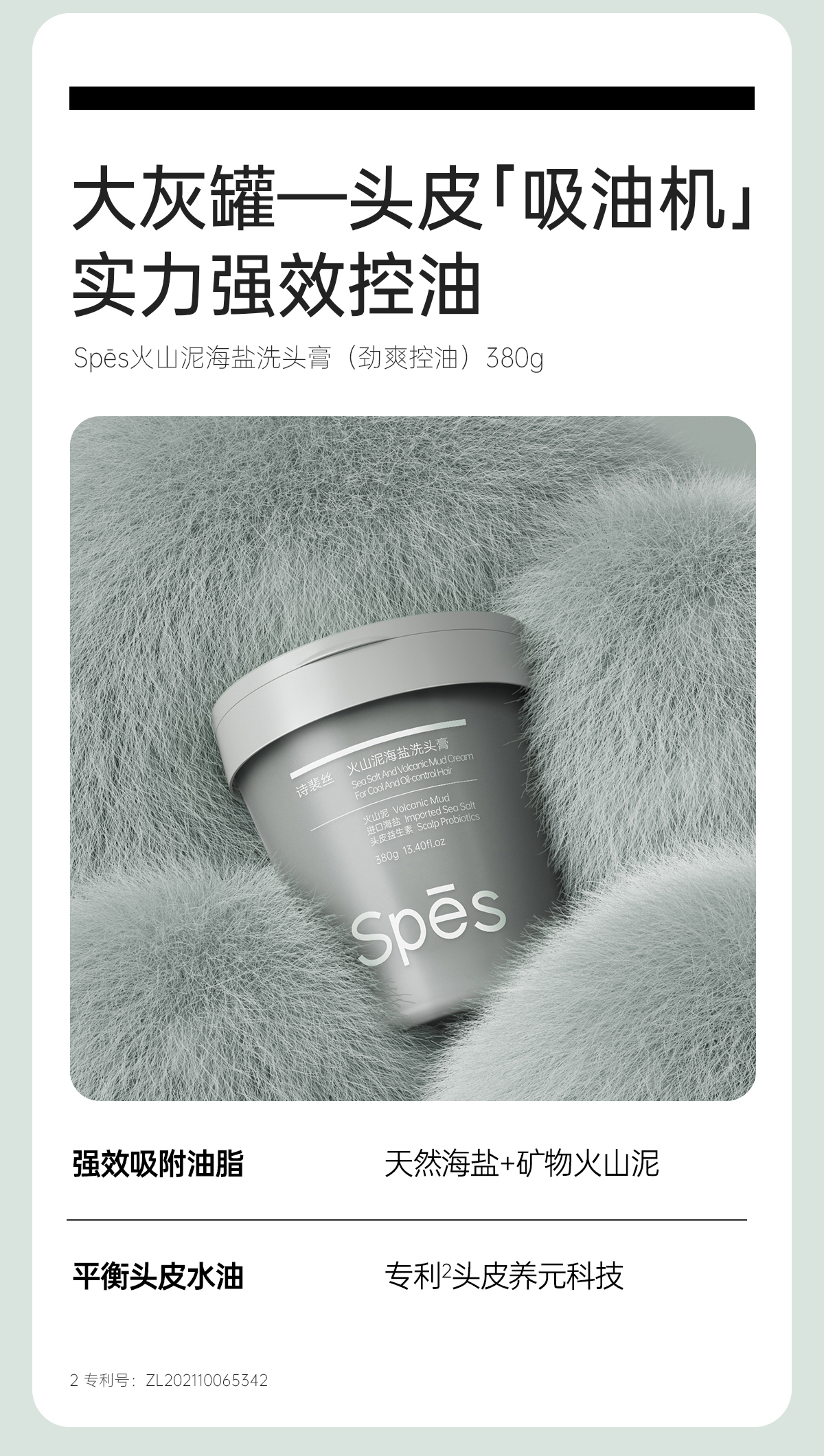 【买即赠沐浴慕斯】Spēs诗裴丝火山泥海盐洗头膏(劲爽控油)380g(不与其他活动叠加)