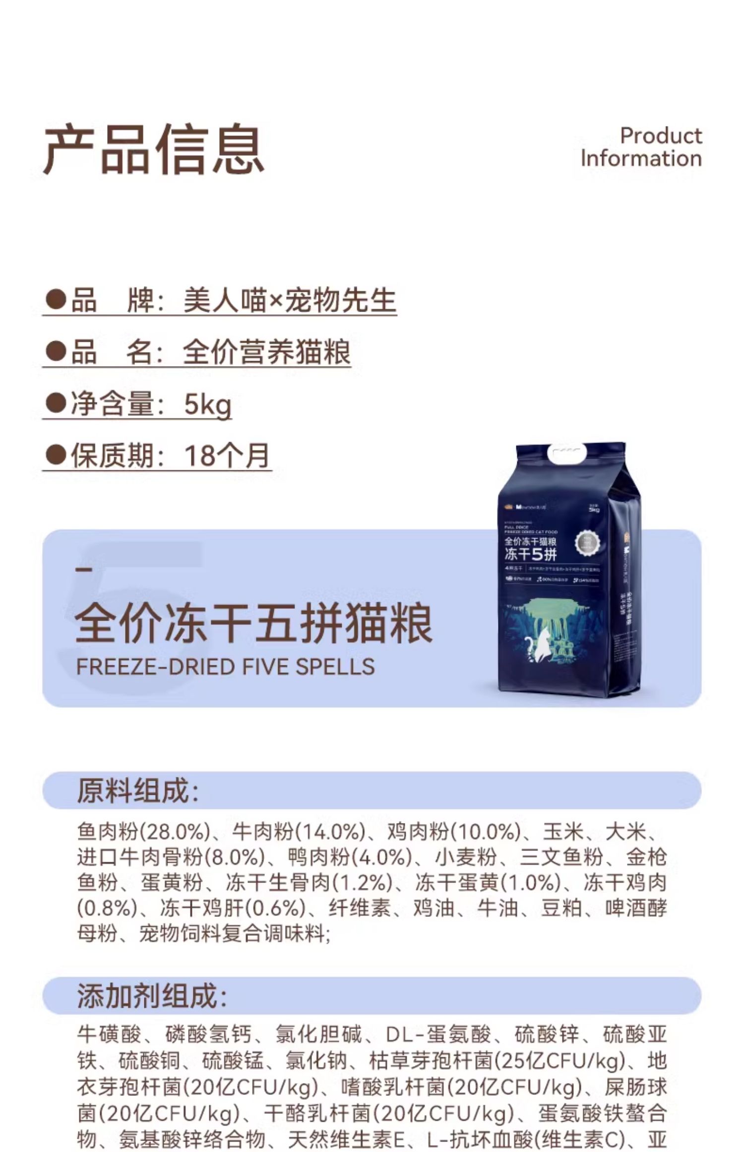 【特惠价】美人喵冻干猫粮10斤装全价猫粮