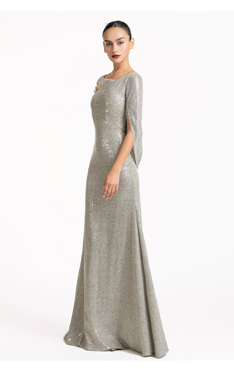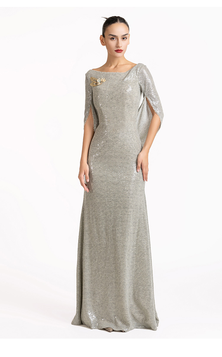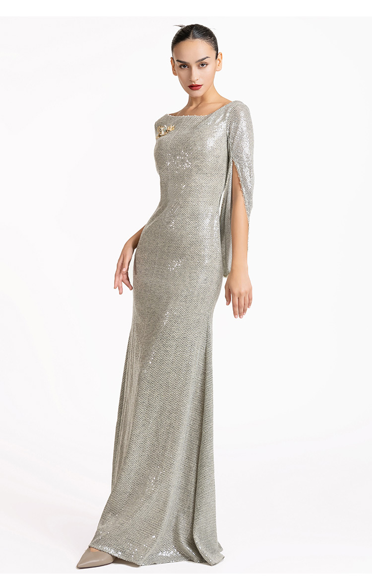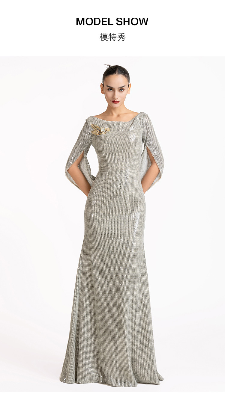 LIZZY优雅轻奢修身显瘦披肩式派对礼服宴会婚庆派对长款连衣裙7189