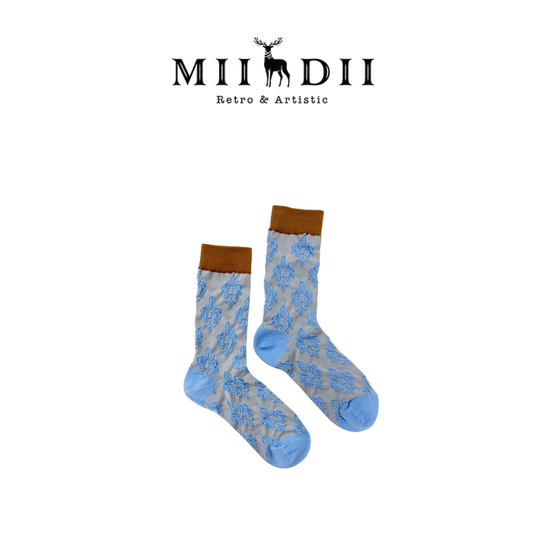 谜底中筒袜2026春季新品复古浮雕袜精致提花拼色袜子女261MQ0409