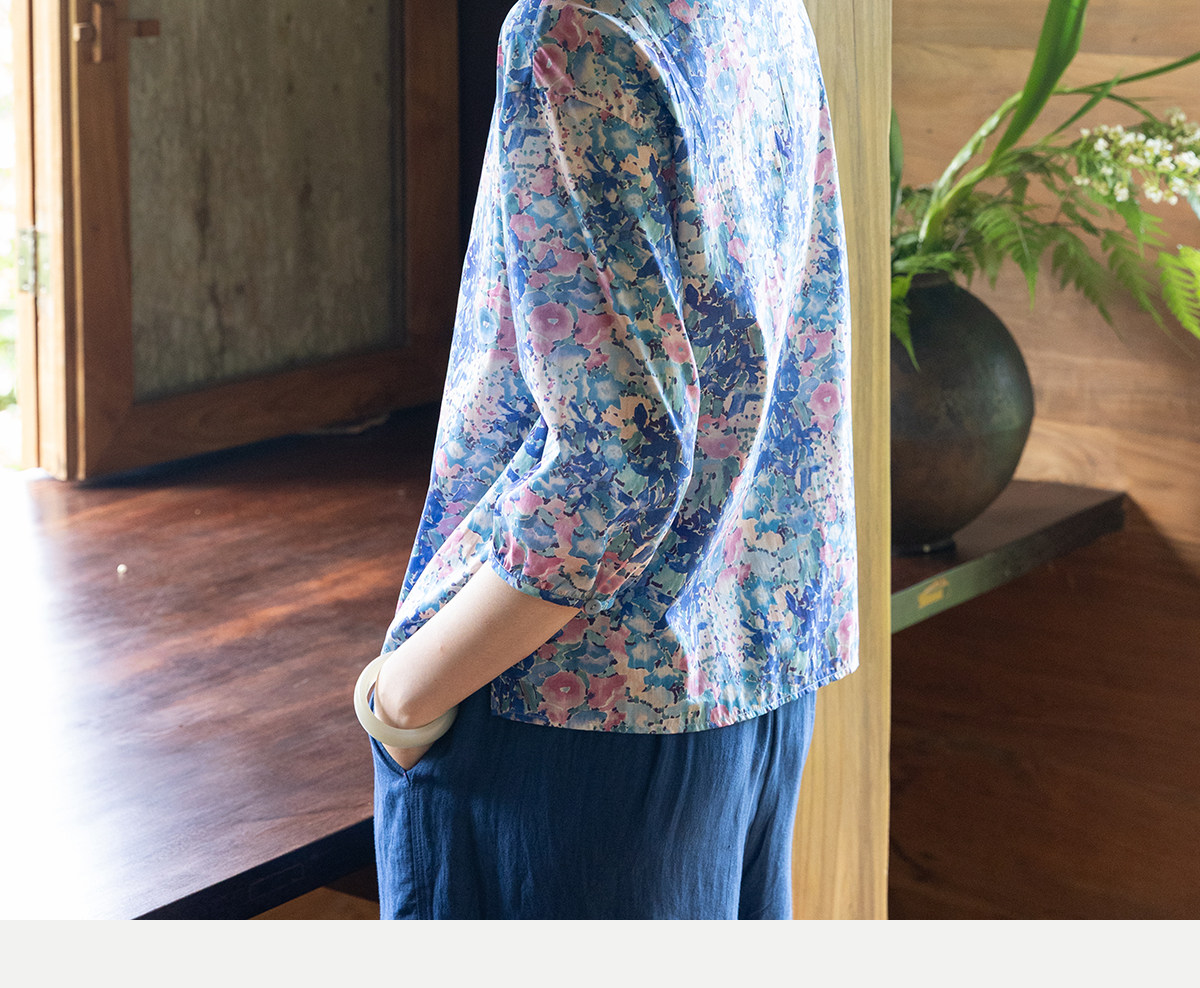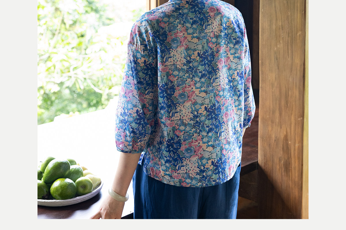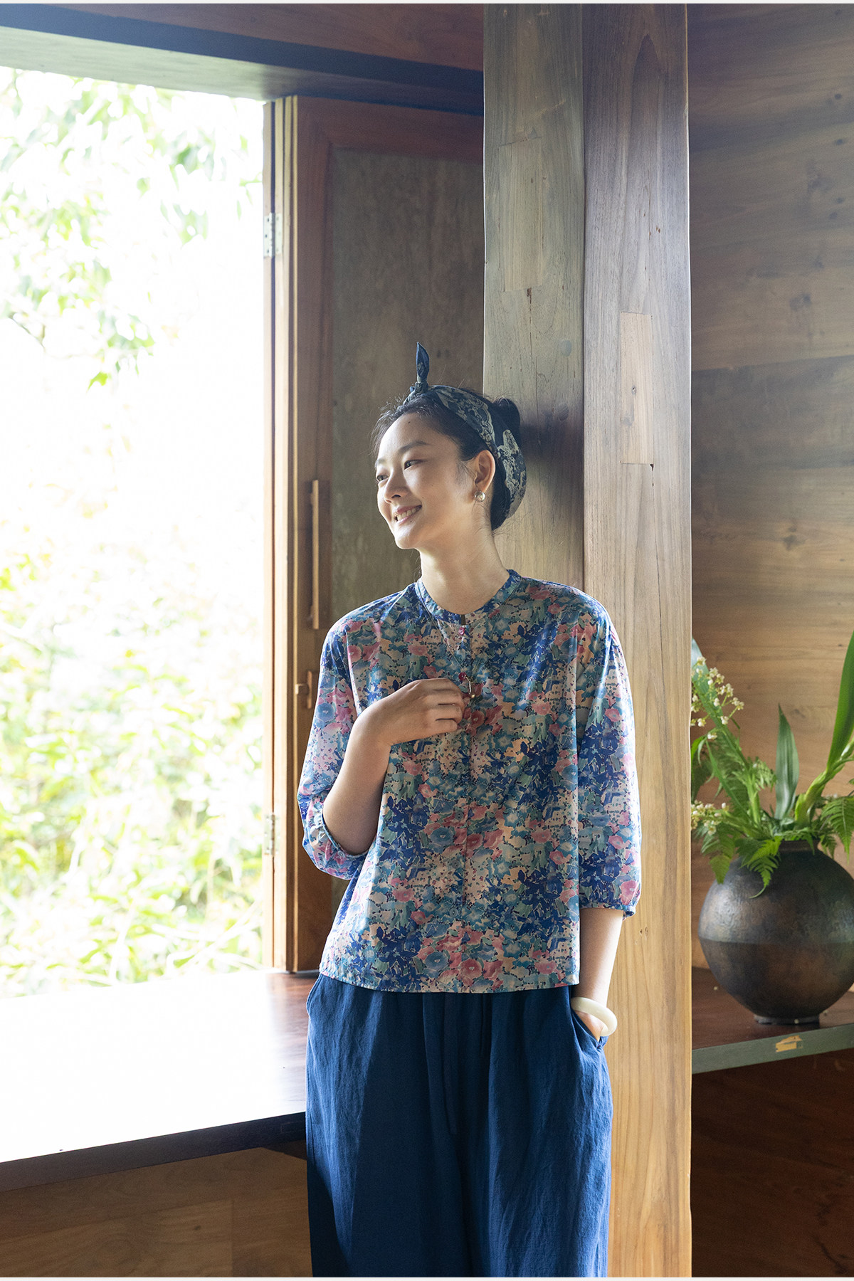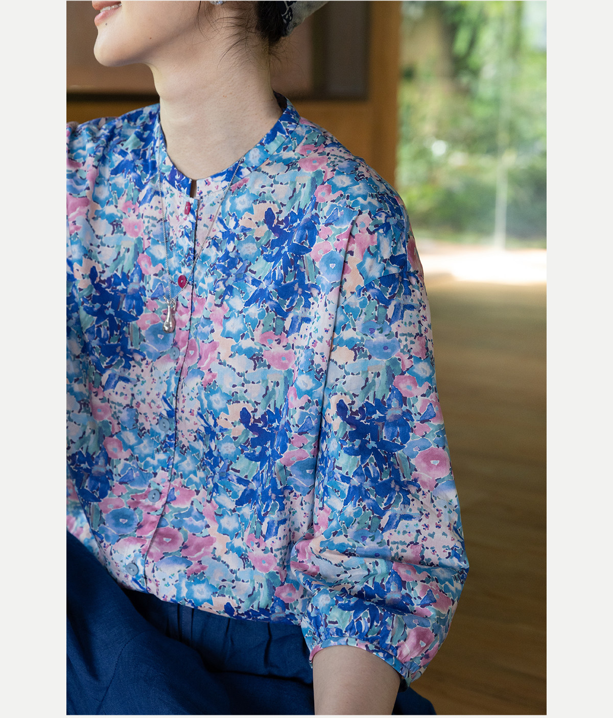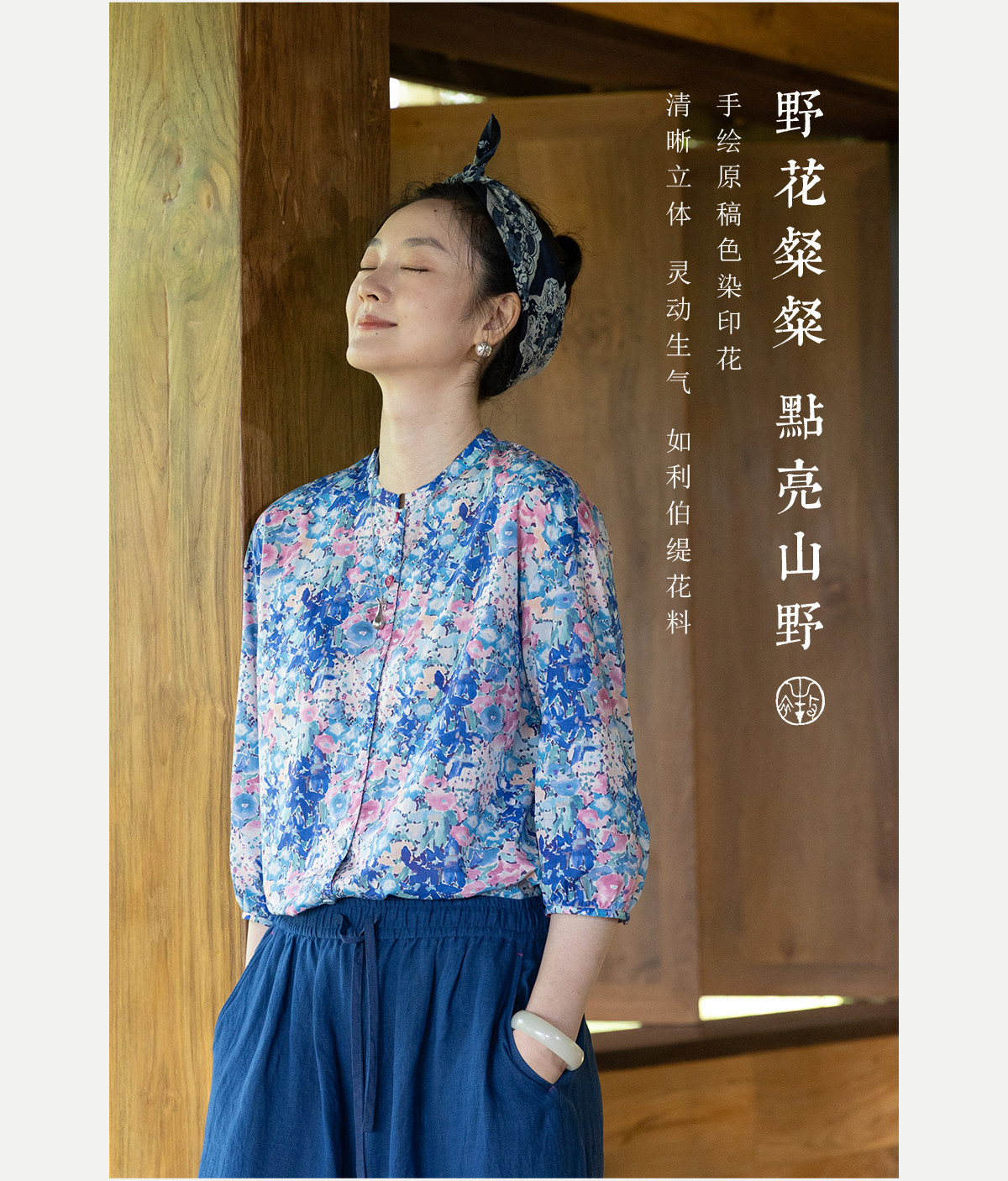 牧衣游原创 80支印花纯棉衬衫新款文艺通勤宽松百搭休闲衬衣 微雨
